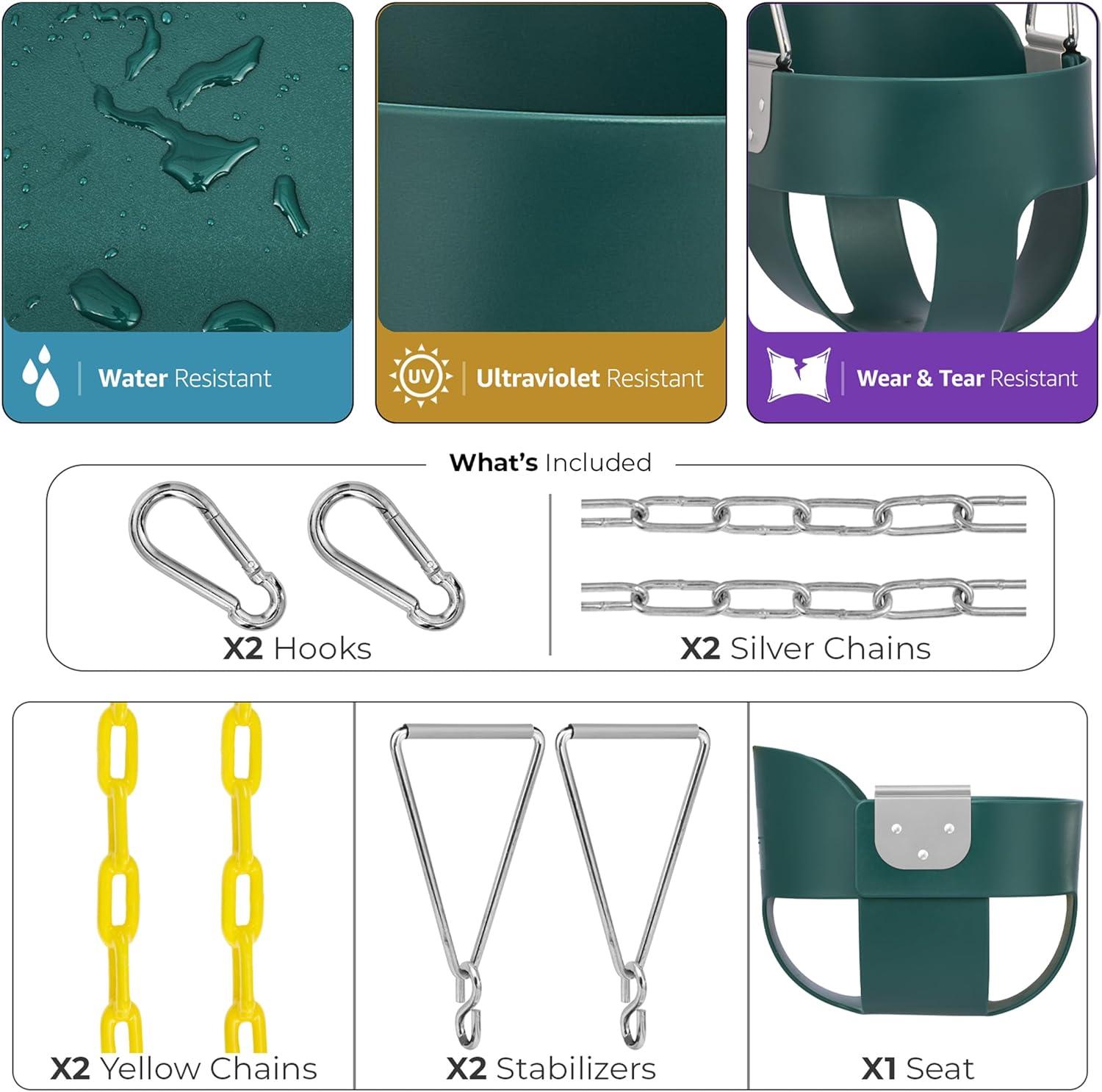 Sorbus Baby Swing – High Back Full Toddler Swing, Bucket Swing for Infants and Toddlers, with Coated Chains Fully Assembled Swing Set Accessories – Durable and Comfortable – Ages 6 Months and Up(1 Swing Seat)