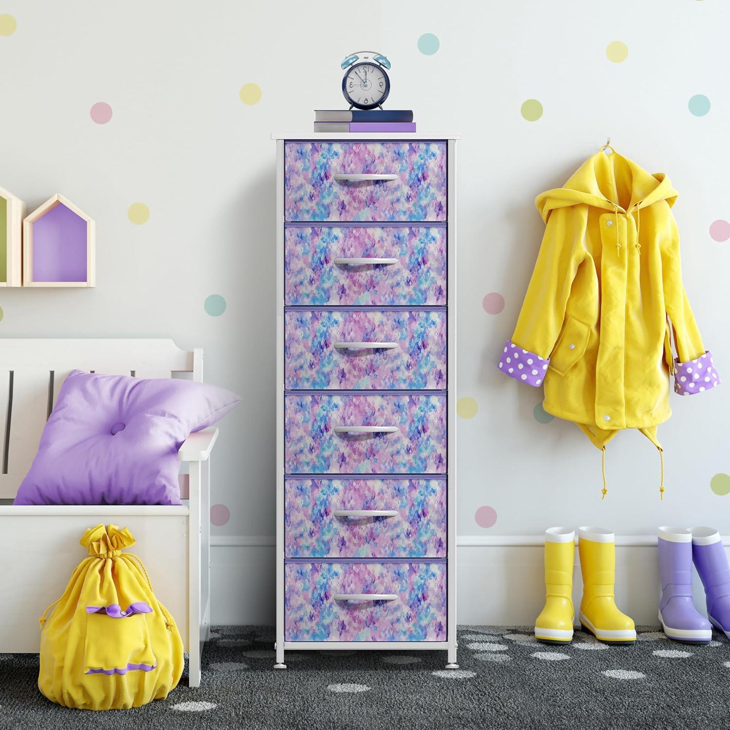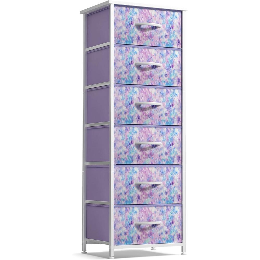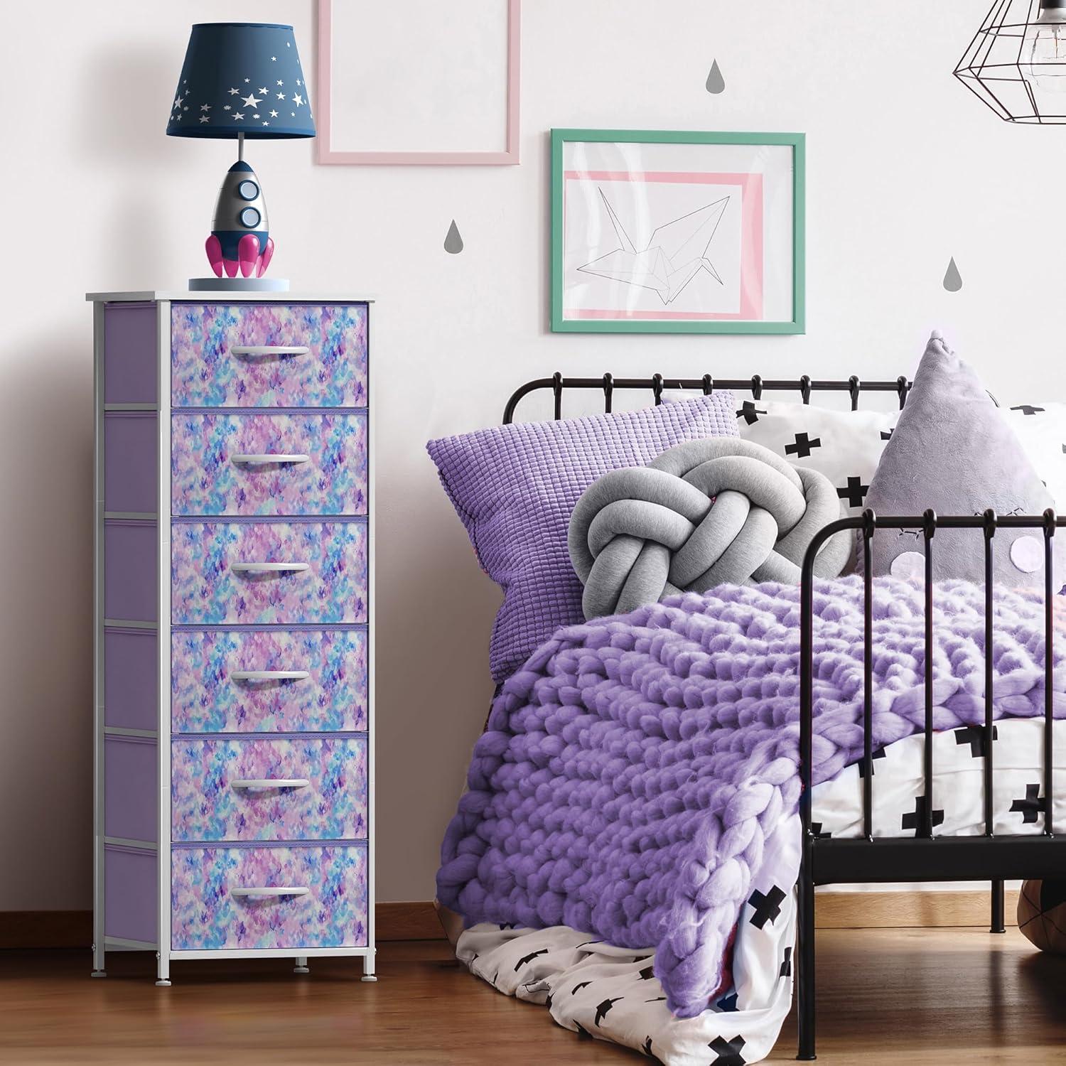 Sorbus Fabric Dresser for Kids Bedroom – Chest of 6 Drawers, Tall Storage Tower, Clothing Organizer, for Closet, for Playroom, for Nursery, Steel Frame, Fabric Bins – Wood Handle (Purple)(Purple Tie-dye)