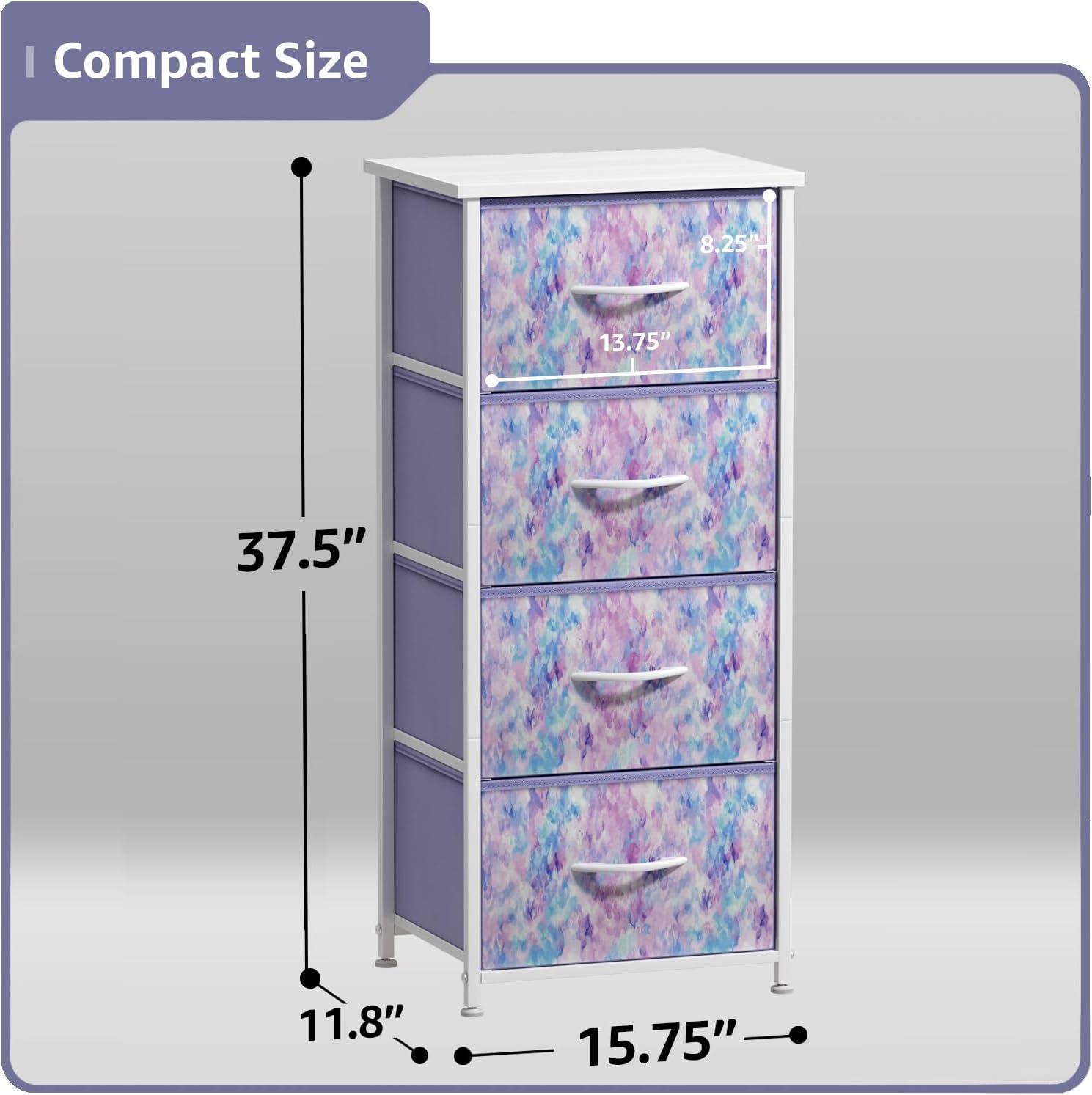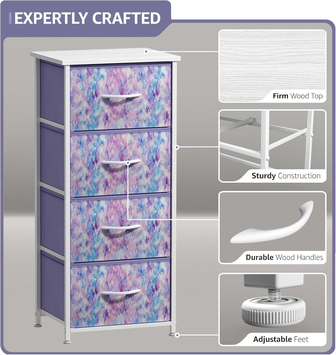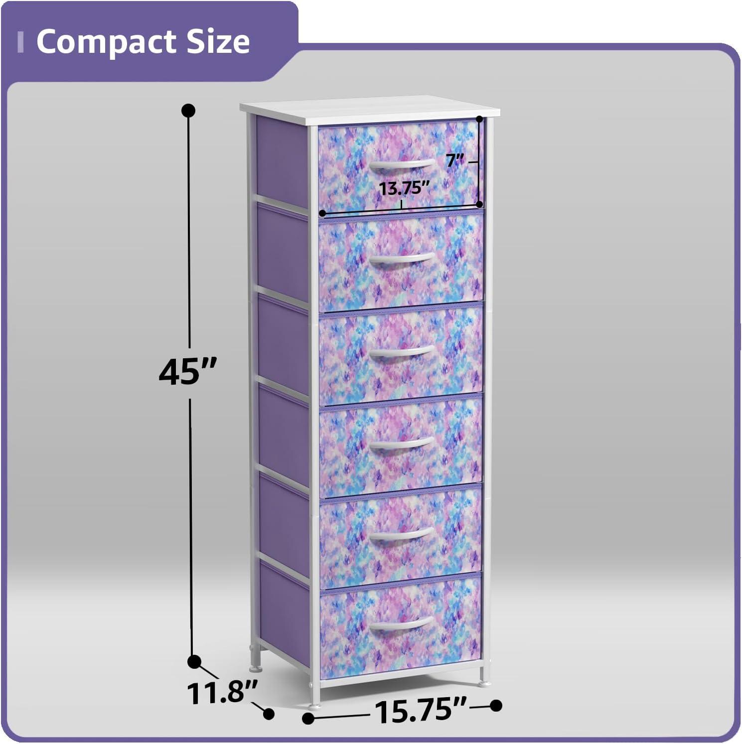 Sorbus Fabric Dresser for Kids Bedroom – Chest of 6 Drawers, Tall Storage Tower, Clothing Organizer, for Closet, for Playroom, for Nursery, Steel Frame, Fabric Bins – Wood Handle (Purple)(Purple Tie-dye)