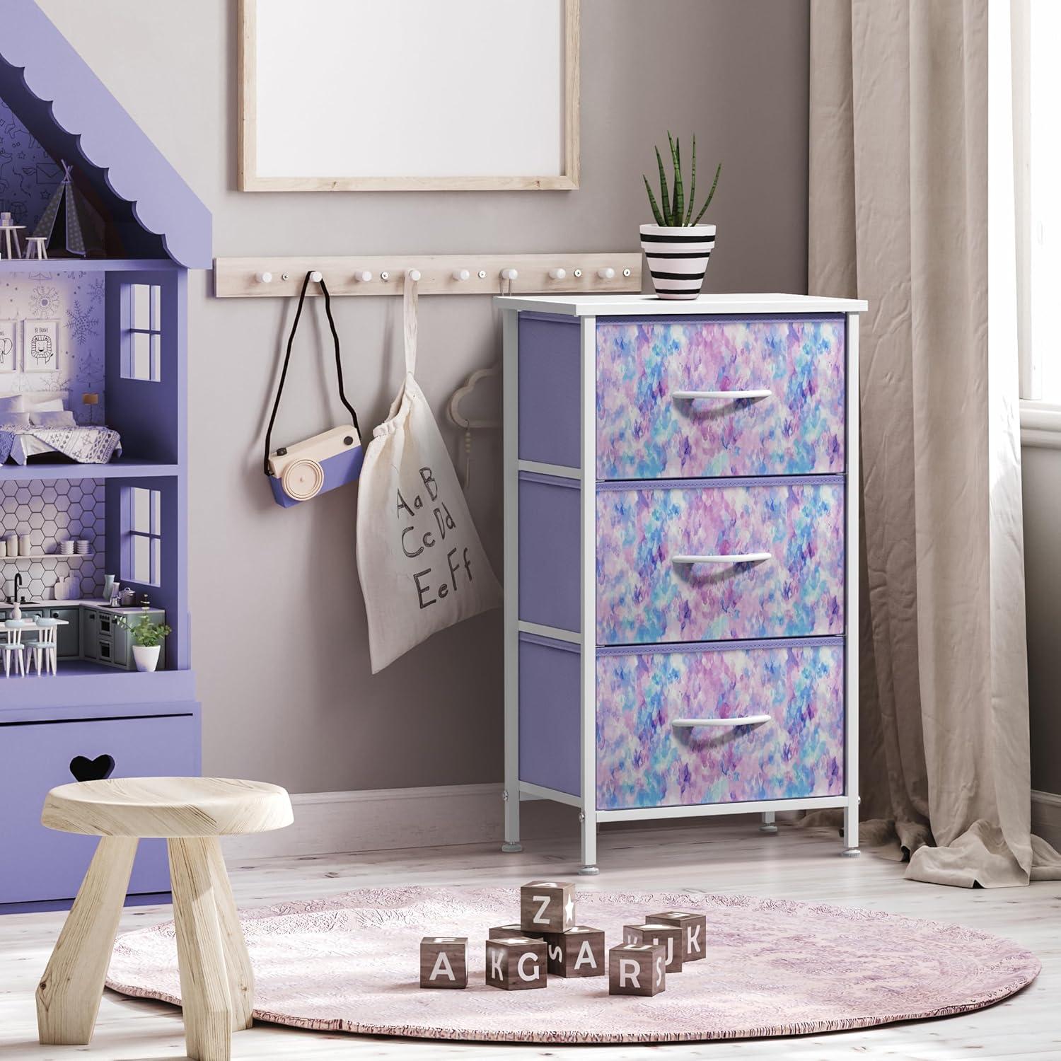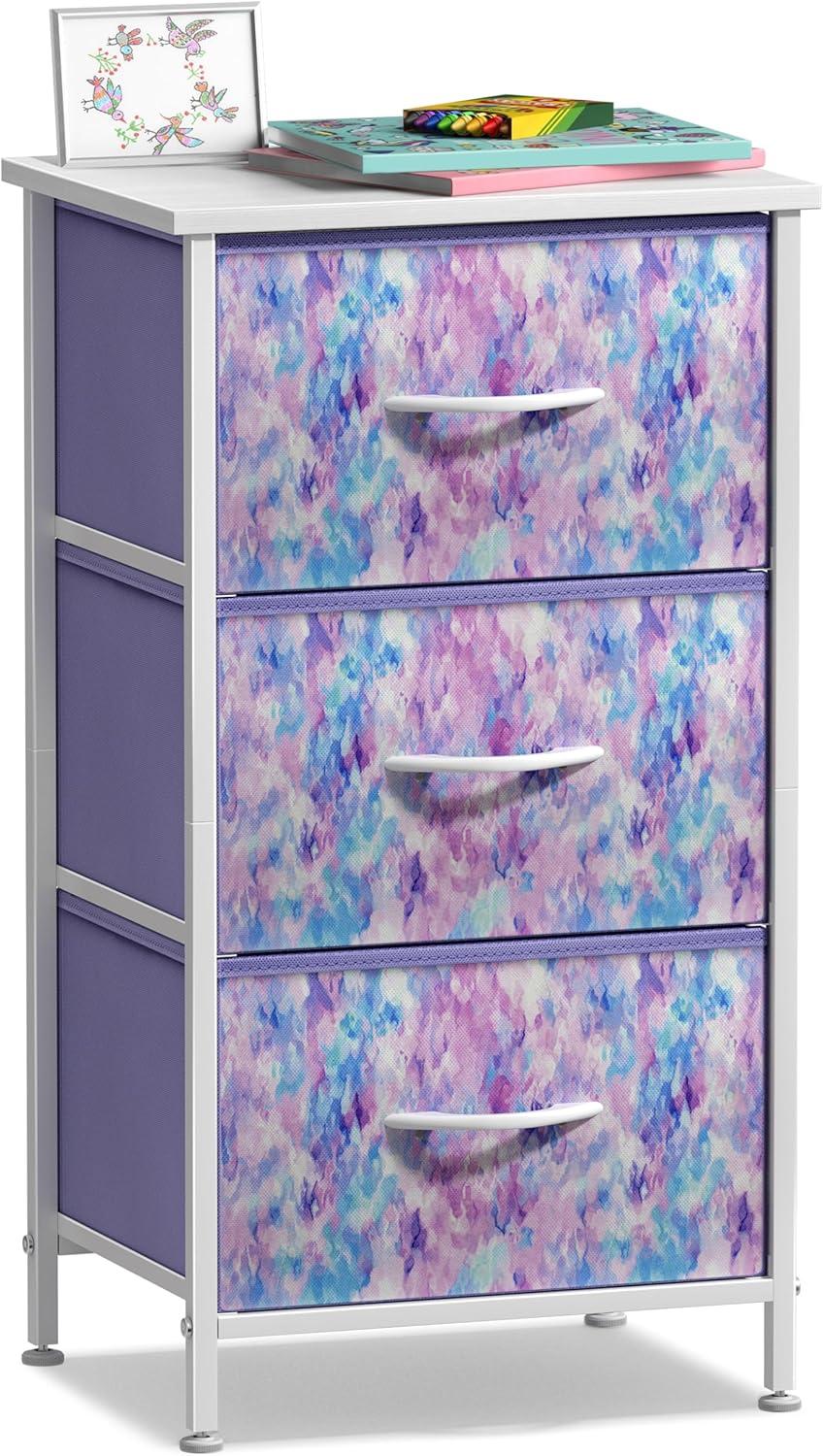 Sorbus Kids Dresser with 7 Drawers – Storage Chest Organizer Unit with Steel Frame, Wood Top & Handles, Tie-dye Fabric Bins for Clothes – Wide Furniture for Bedroom Hallway Kids Room Nursery & Closet(Blue/Pink/Purple)