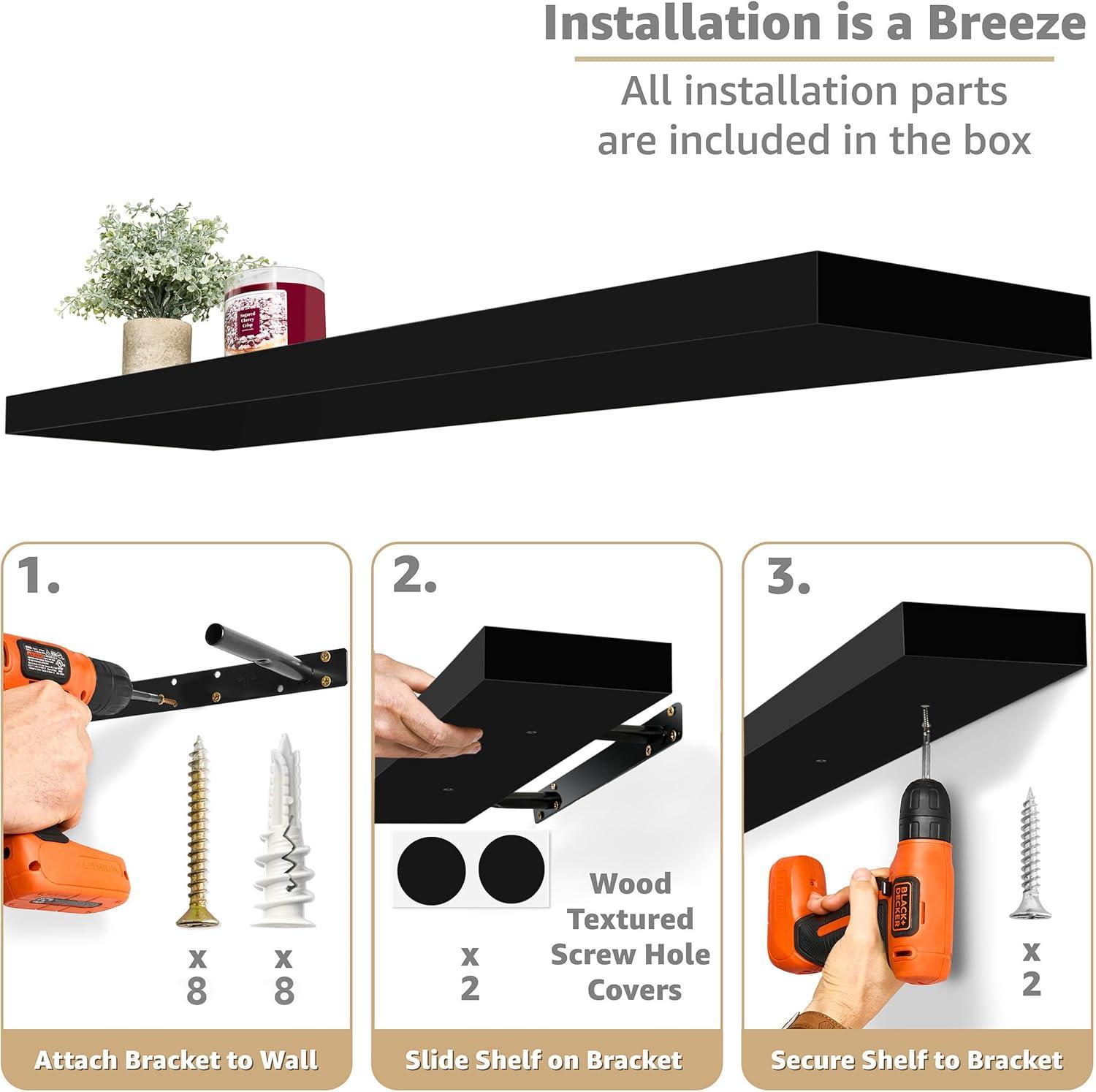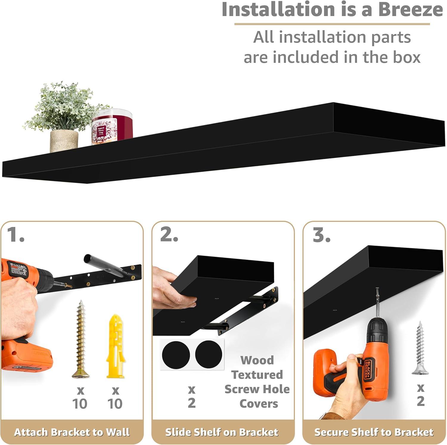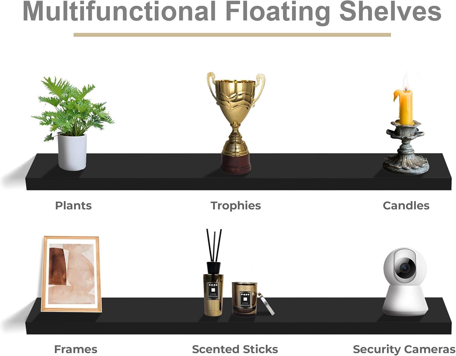 Sorbus Floating Shelves for Wall – 55 Inch Extra-Long Bathroom Shelves, Wall Decor for Bedroom, Kitchen, Living Room, Book Storage – Mounted Floating Shelf with Hidden Brackets (White, 2 Pack)(Black)