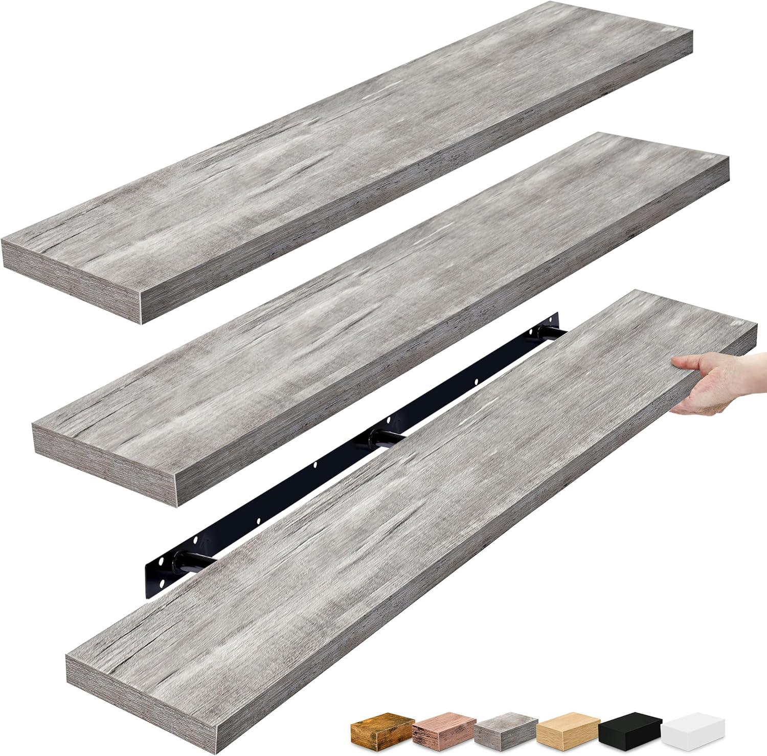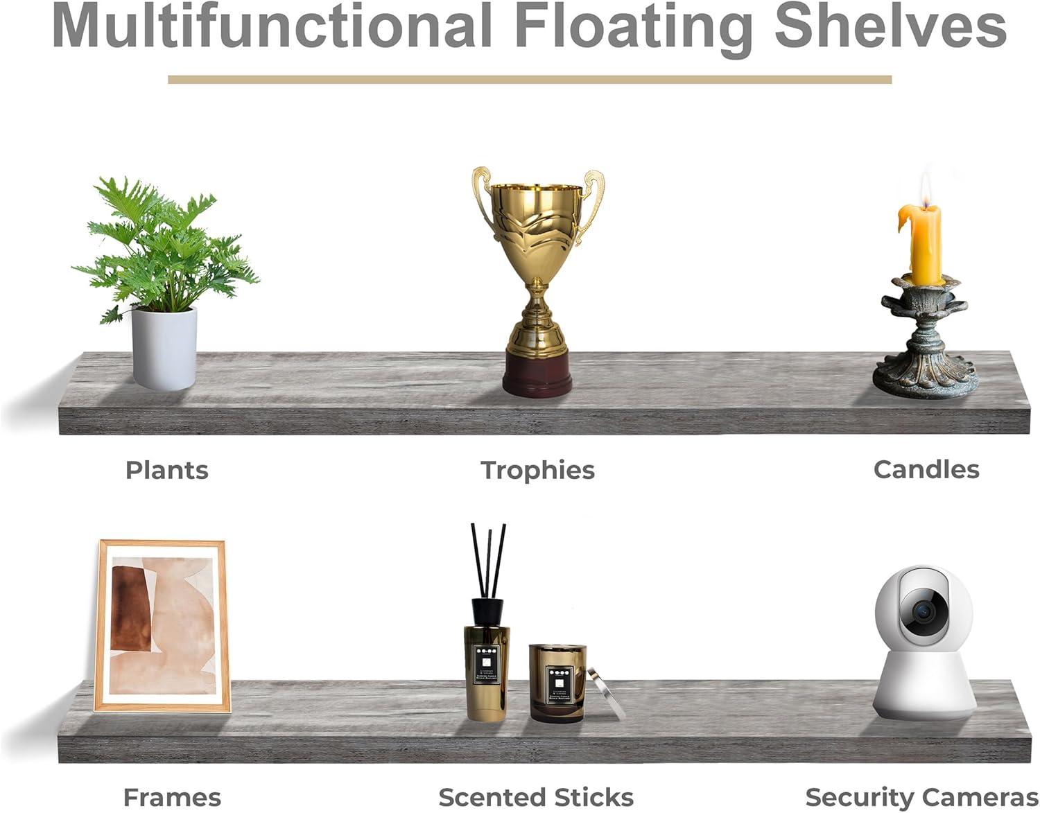 Sorbus Floating Shelves for Wall – 55 Inch Extra-Long Bathroom Shelves, Wall Decor for Bedroom, Kitchen, Living Room, Book Storage – Mounted Floating Shelf with Hidden Brackets (White, 2 Pack)(Grey)