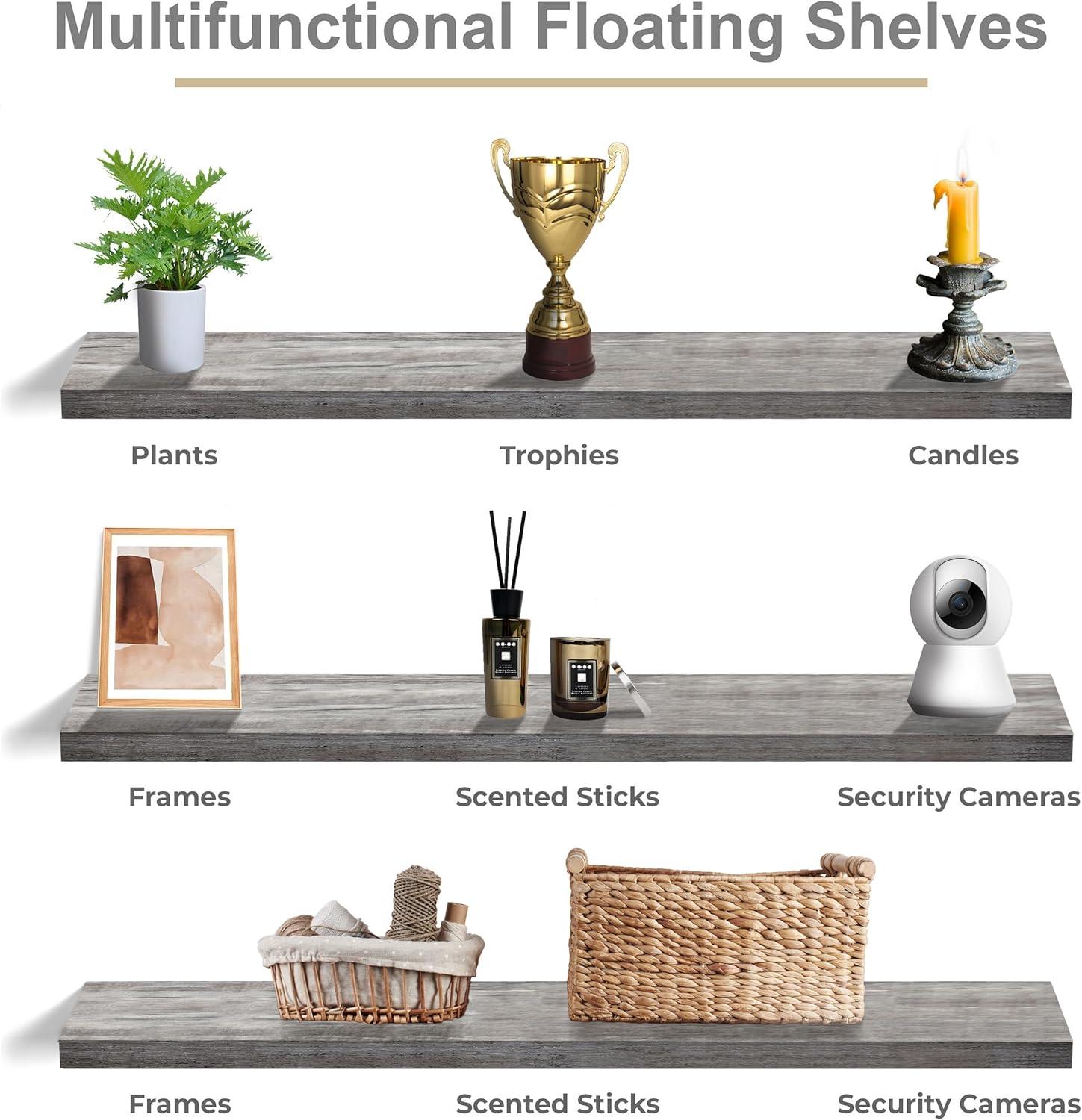 Versatile & Functional Floating Wall Shelves: Floating shelves can also be used to hold beauty or hair products in the bathroom or bedroom. Place the wall shelves under a mirror in the entryway or exhibit family photos gallery style in a long hallway. Use as bathroom shelf, book shelf for wall, wall shelves for bedroom, above toilet shelf, kitchen shelves, shelves for room wall, floating shelves bathroom, living room wall shelf, display shelf and more