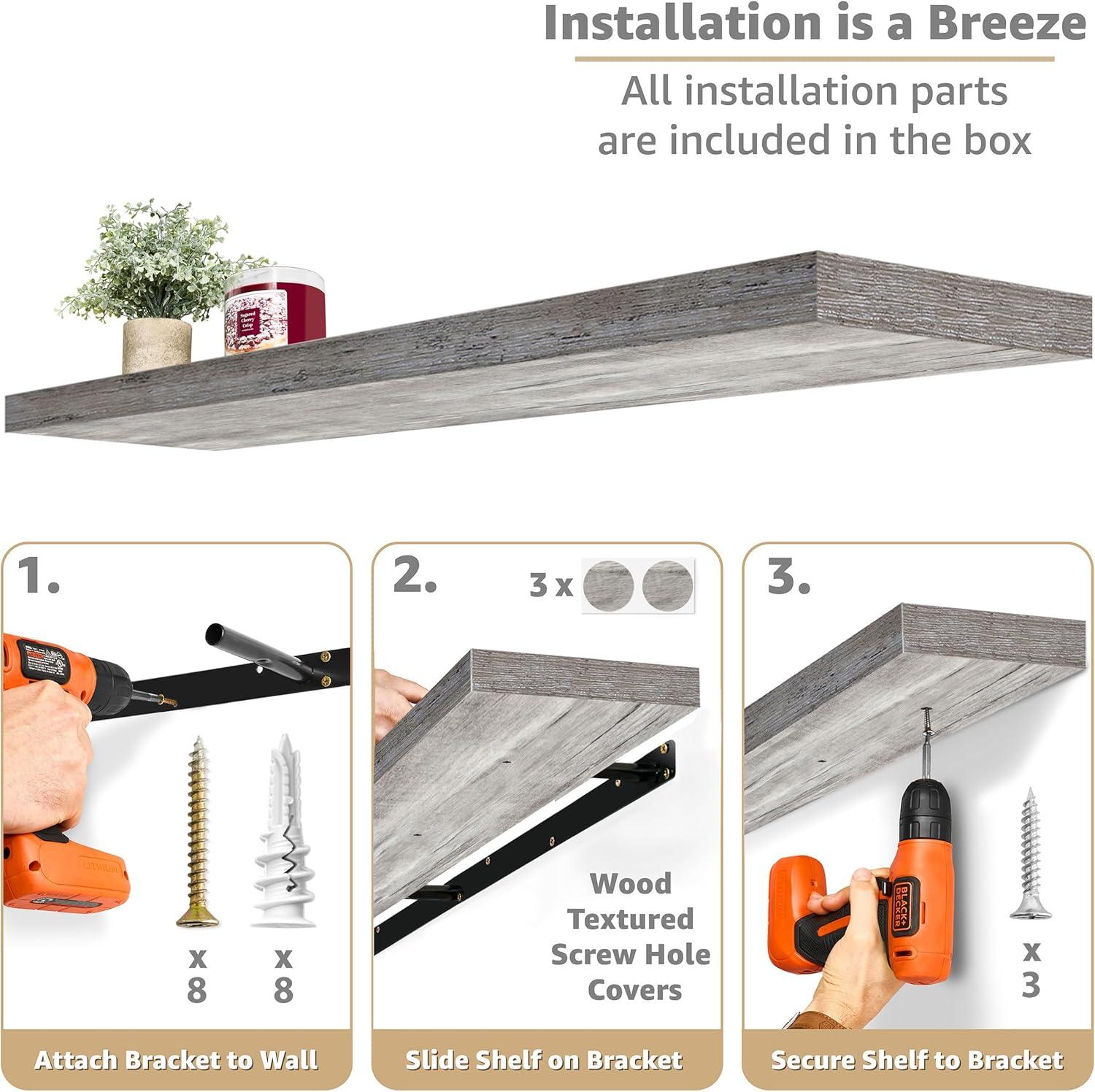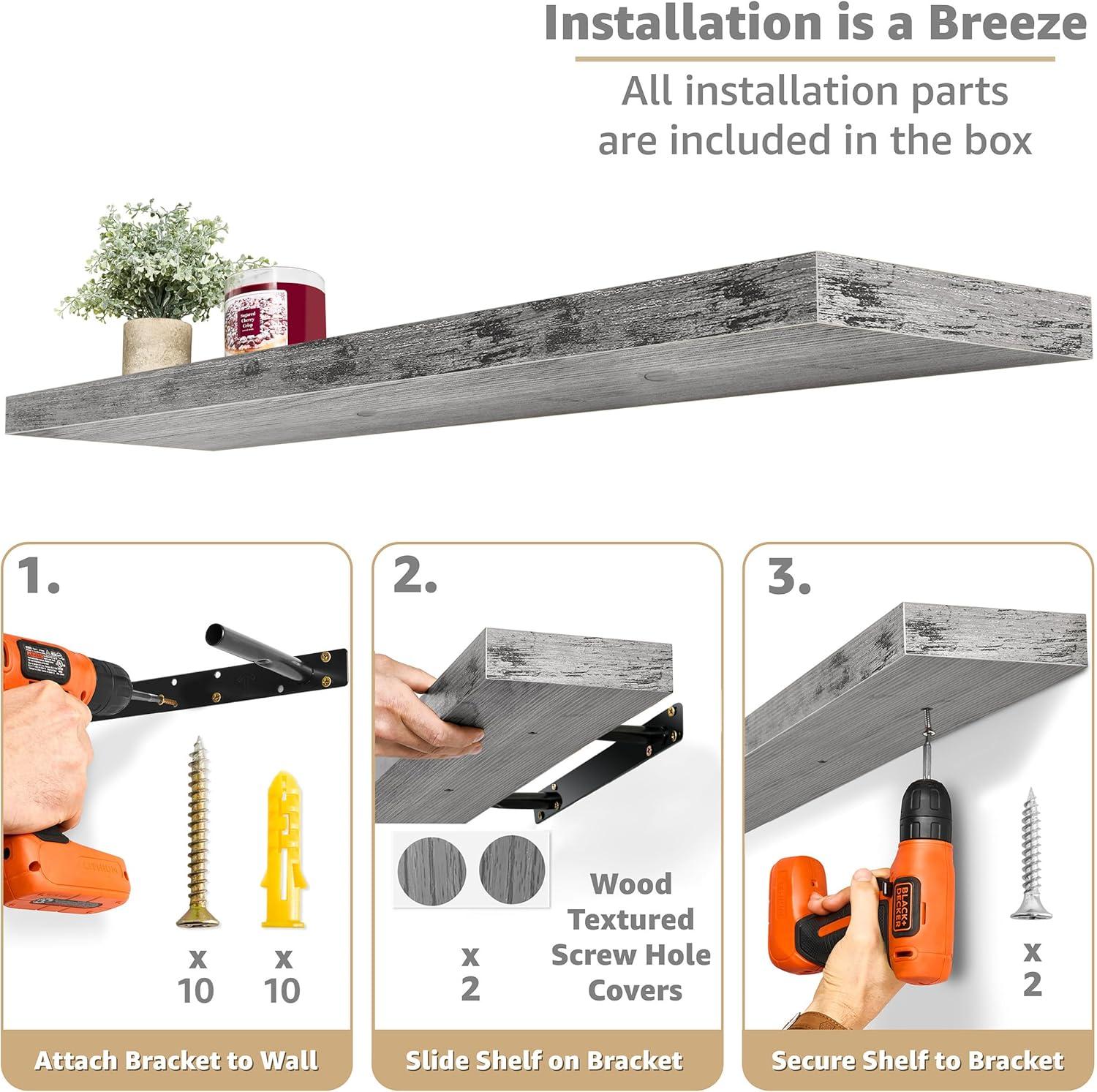 Easy to Install: Minor assembly required, detailed instructions included. Hanging shelves are made of beautiful, engineered faux wood (not solid wood) with a smooth matte finish. Enhanced steel brackets attach firmly to the wall. Sturdy enough to hold up to 22 lbs. Mounting hardware INCLUDED. Color of bathroom shelf may be slightly different from the product photos due to lighting and screen settings