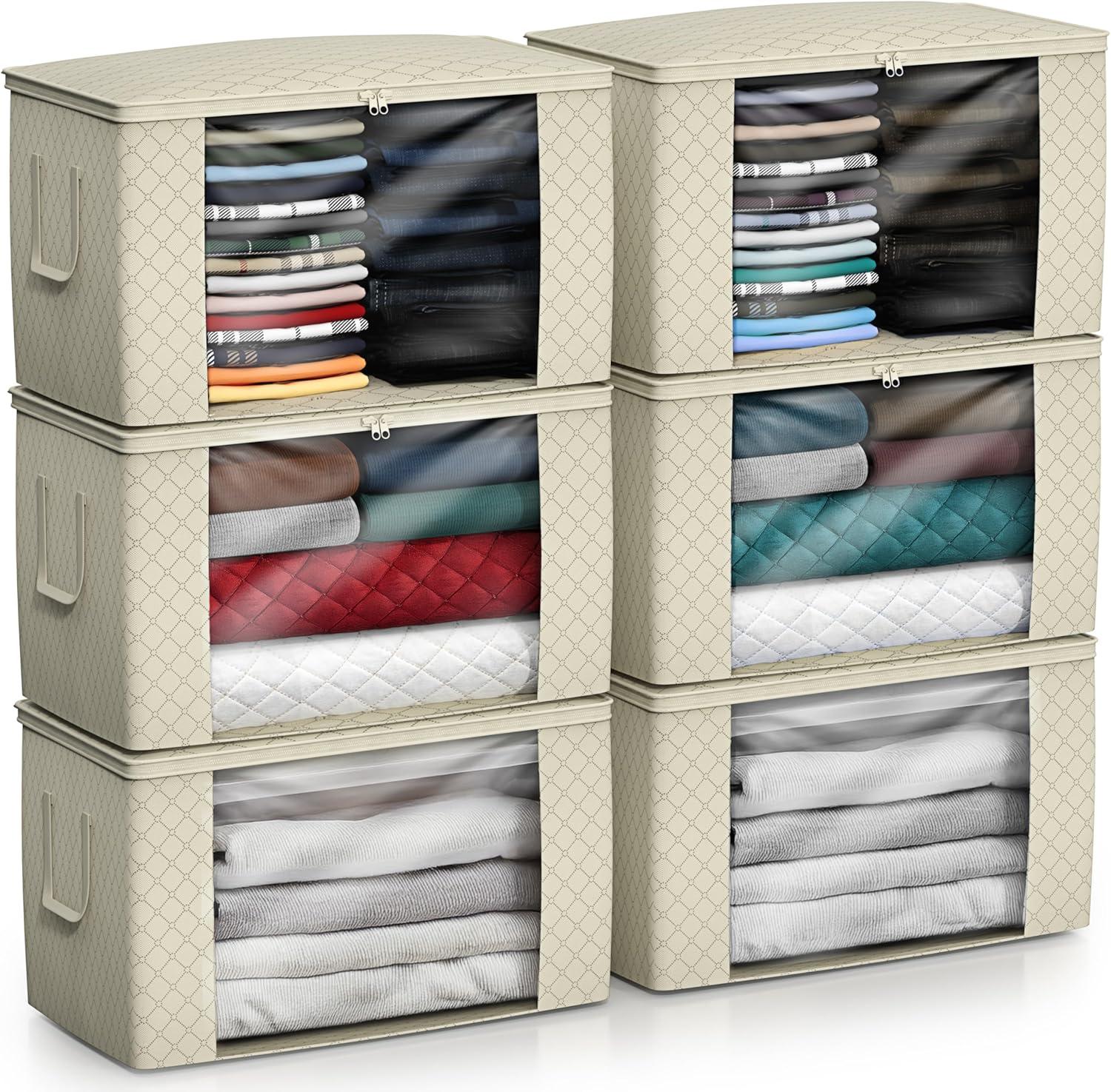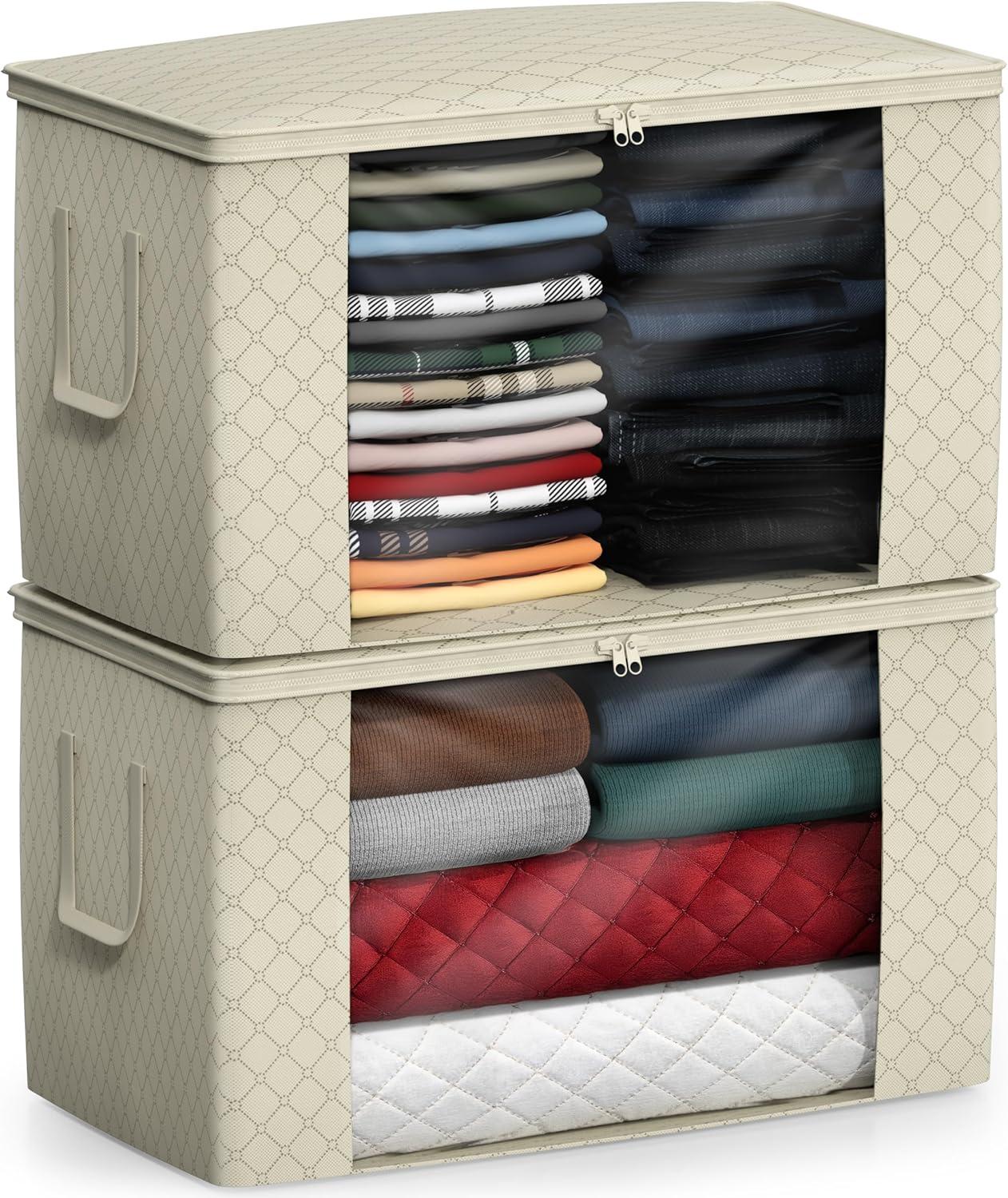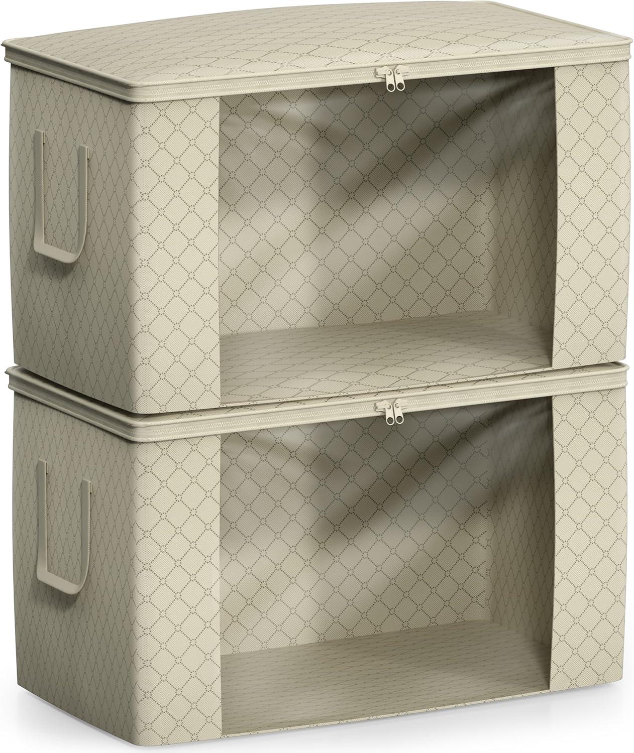 Premium Fabric: Storage bags for bedding with a 40L capacity, ideal for comforter organizers and storage. Made of high-quality, breathable non-woven fabric. Simply wipe the clothing storage bags with a wet towel to clean, then air dry. Each clothes storage bin measures 23.5″ L x 17″ W x 14″ H.