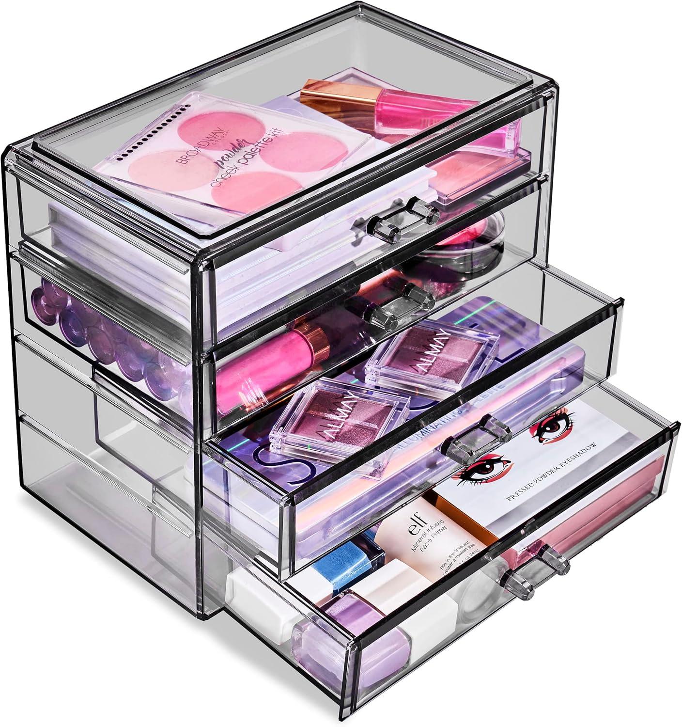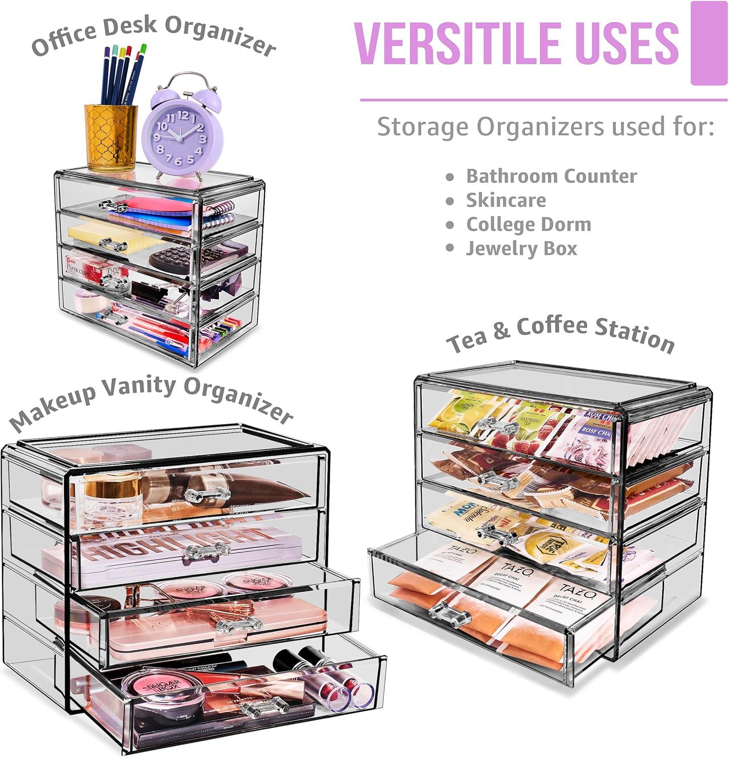 Sorbus Makeup Organizer – 4 Drawer Acrylic Make Up Organizers and Storage for Cosmetics, Jewelry, Beauty Supplies, Clear Makeup Organizer for Vanity, Girl’s Room, College Dorm, Counter, Bathroom Sink(Clear)