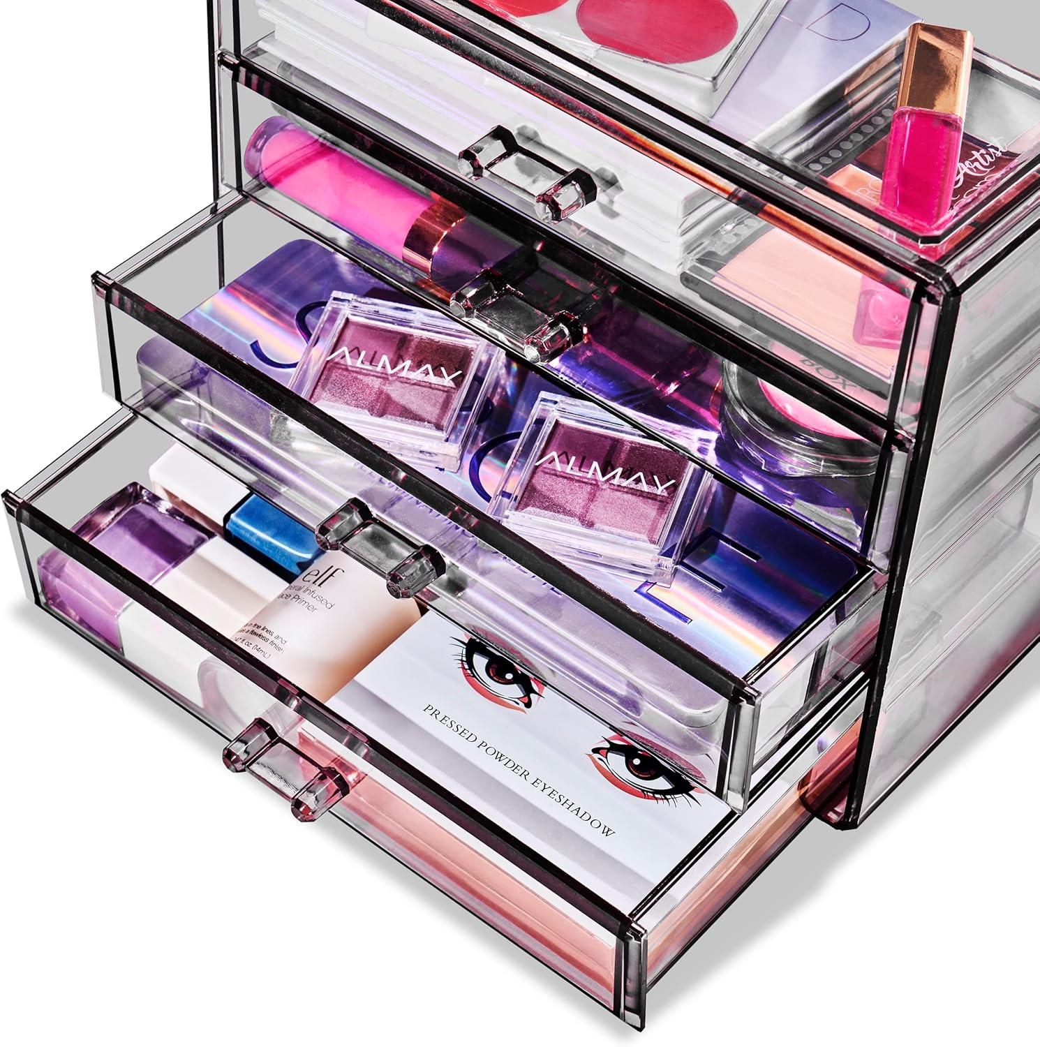 Sorbus Makeup Organizer – 4 Drawer Acrylic Make Up Organizers and Storage for Cosmetics, Jewelry, Beauty Supplies, Clear Makeup Organizer for Vanity, Girl’s Room, College Dorm, Counter, Bathroom Sink(Dark Black)