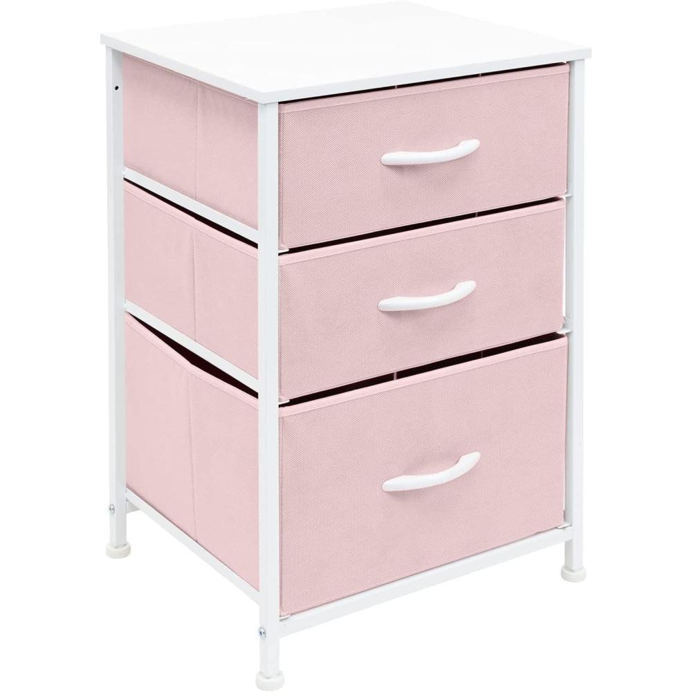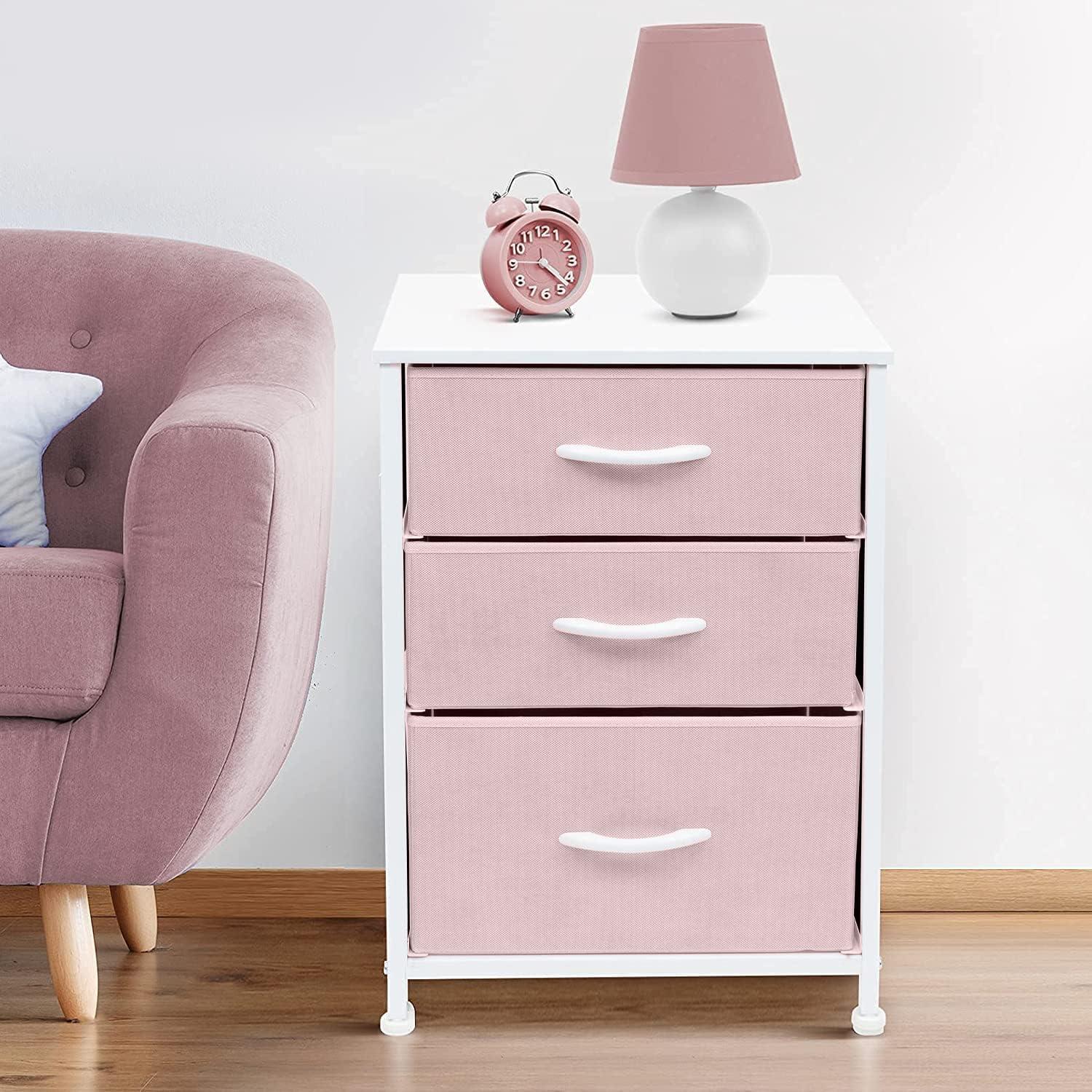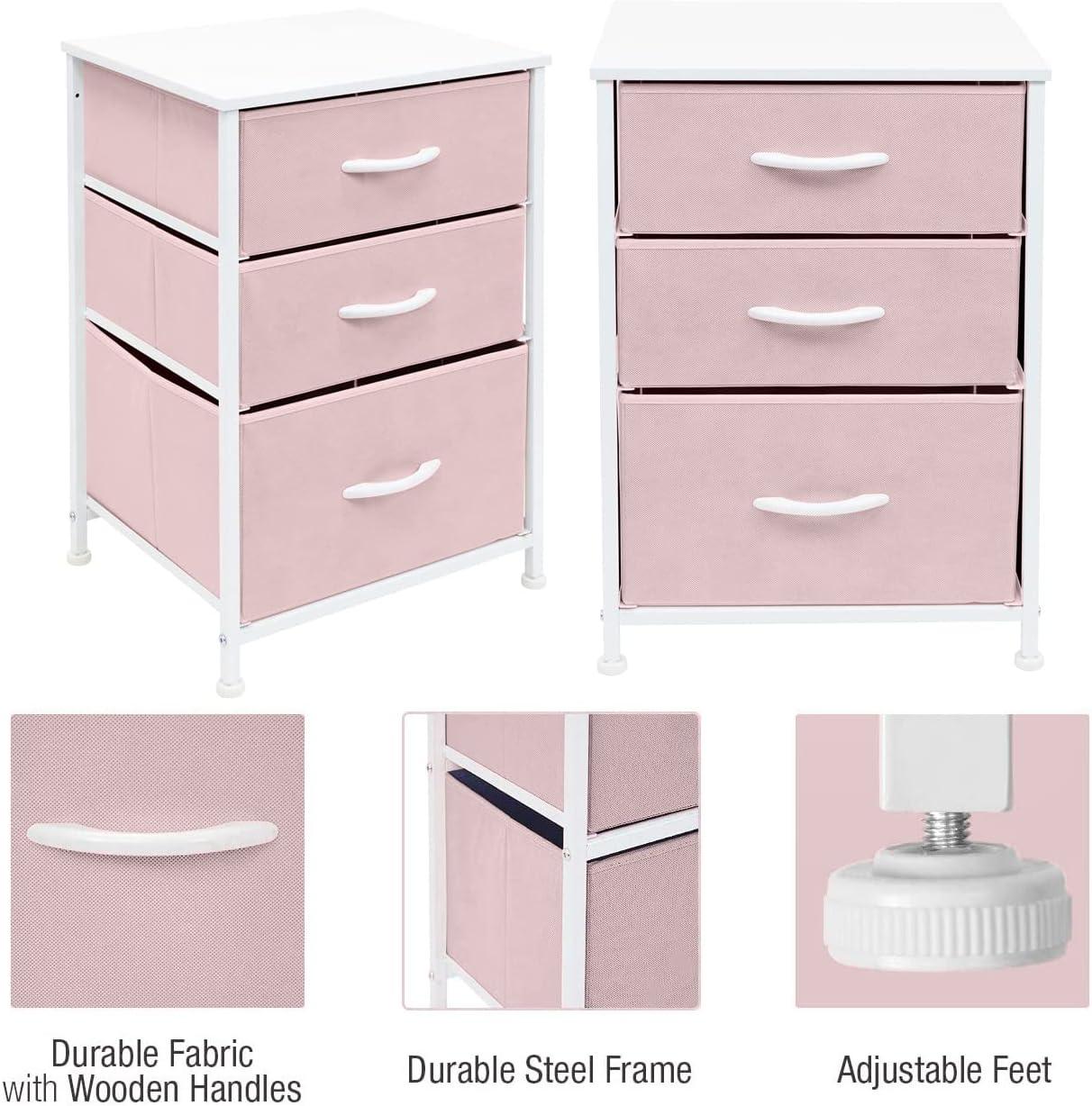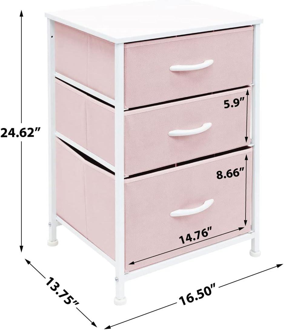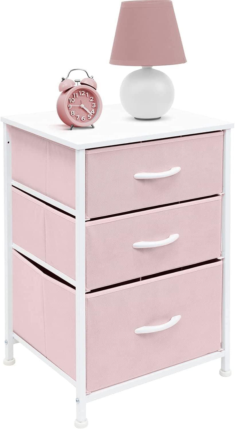 Sorbus Nightstand Storage Organizer with 3 Drawers – Kids Girls, Boys Bedroom Furniture Storage Chest for Clothes, Closet Organization – Steel Frame, Wood Top, Fabric Bin (Pastel Tie-dye Blue/Pink)(Pastel Pink)