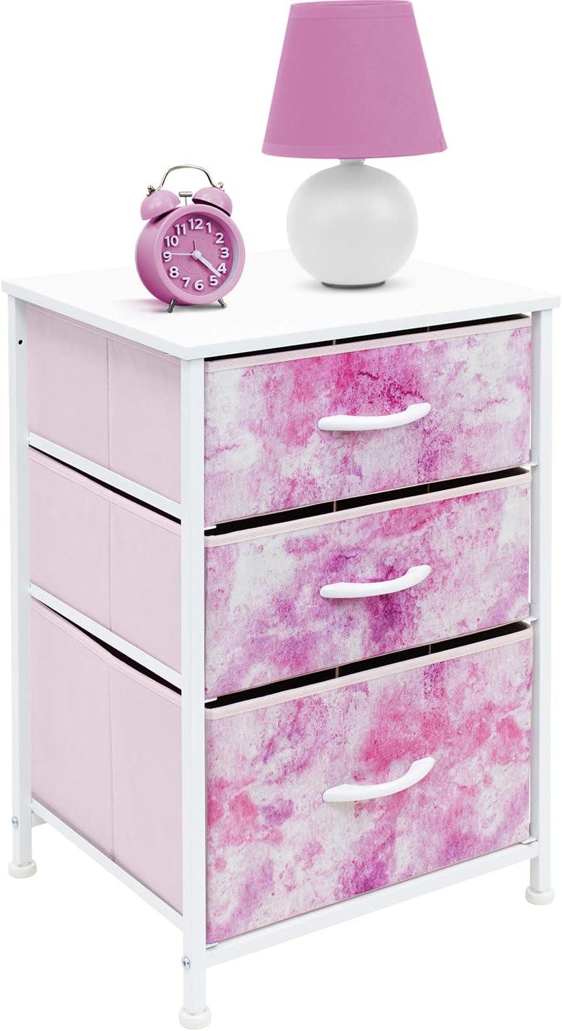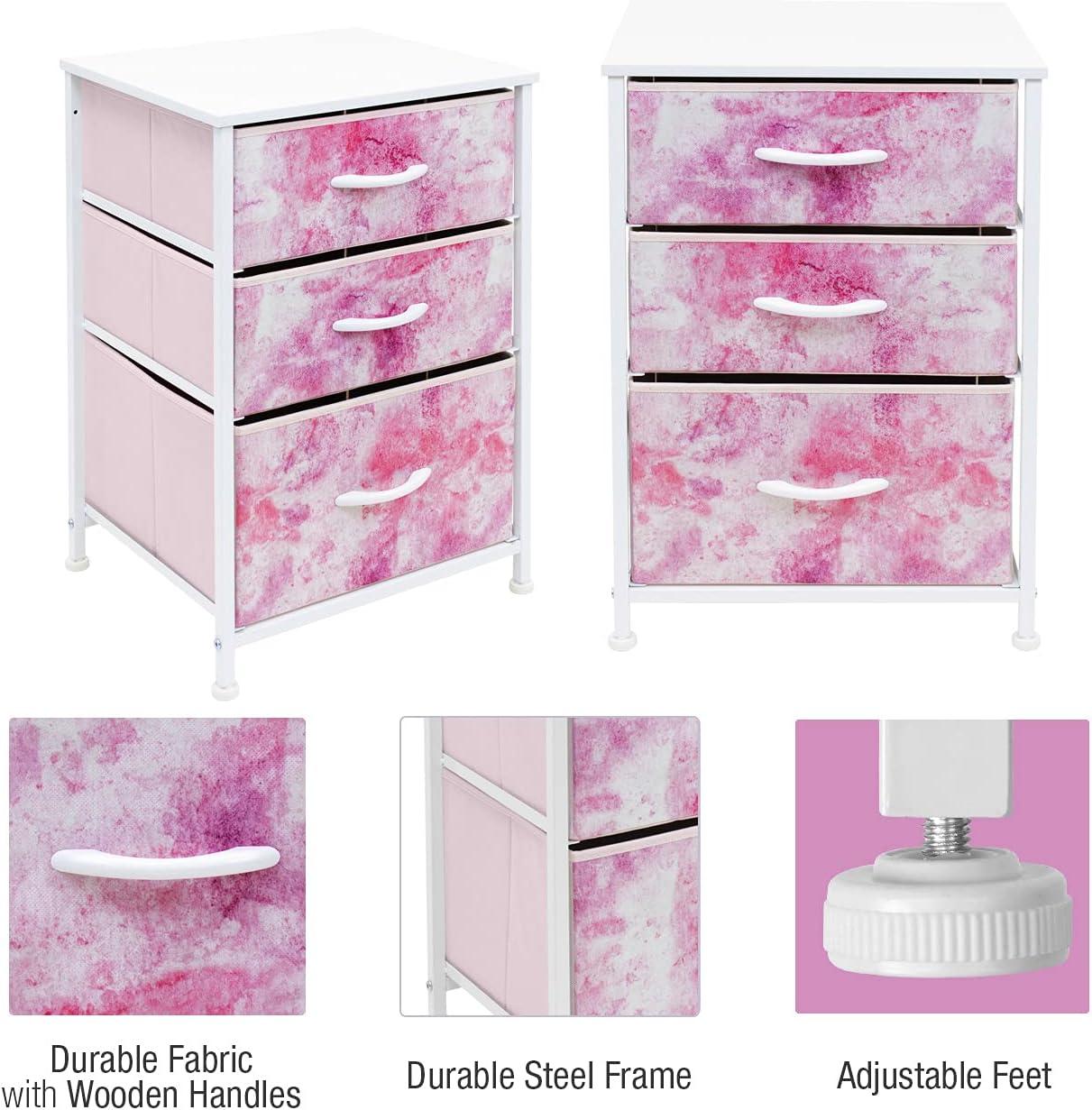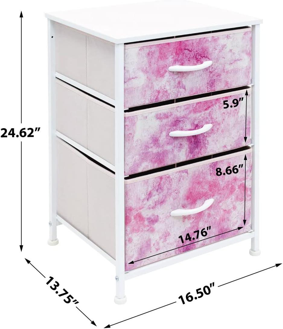 Sorbus Nightstand Storage Organizer with 3 Drawers – Kids Girls, Boys Bedroom Furniture Storage Chest for Clothes, Closet Organization – Steel Frame, Wood Top, Fabric Bin (Pastel Tie-dye Blue/Pink)(Tie-dye Pink)