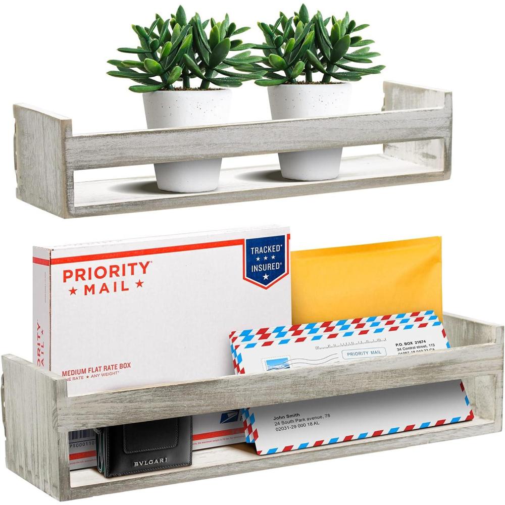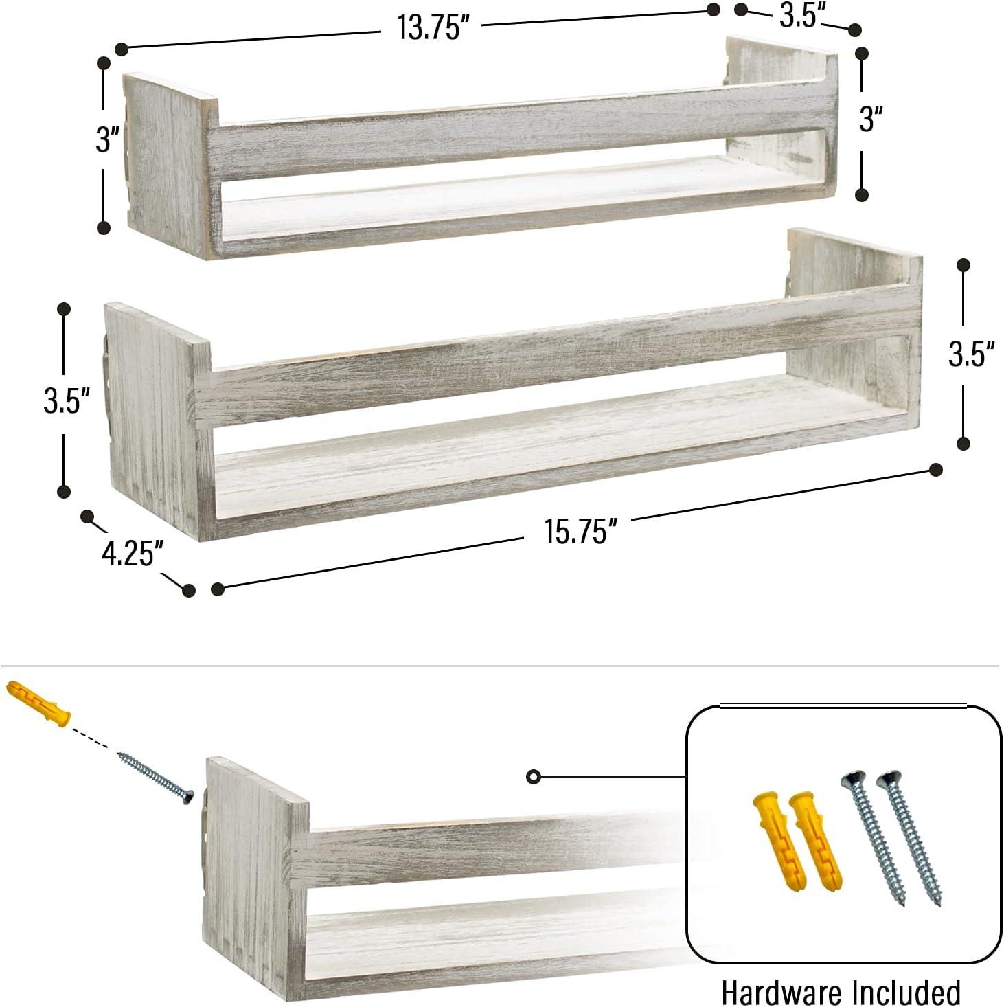 Sorbus Rustic Floating Wood Shelves for Bathroom, Decorative Storage Shelves for Kitchen Wall, Baby Nursery Décor, Farmhouse, Spice Rack, Living Room Book Shelf Organizer (Grey)