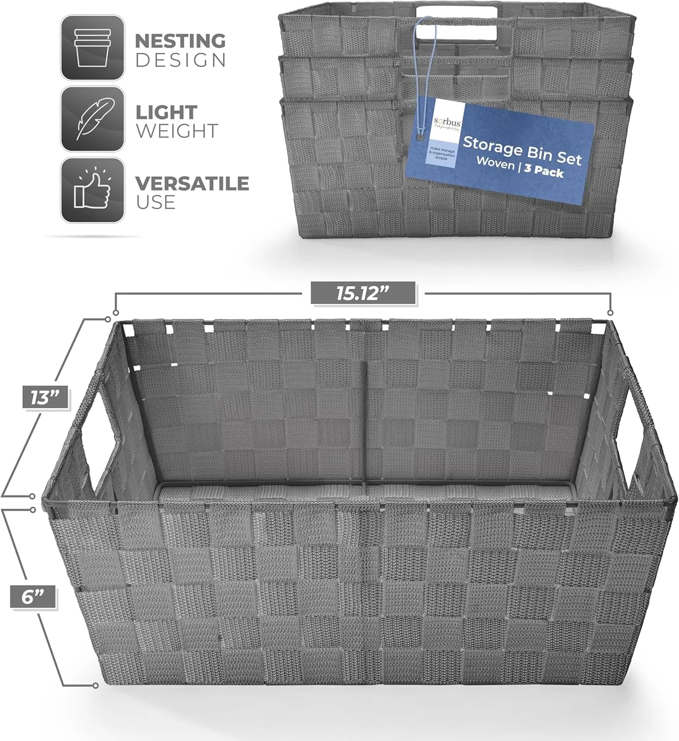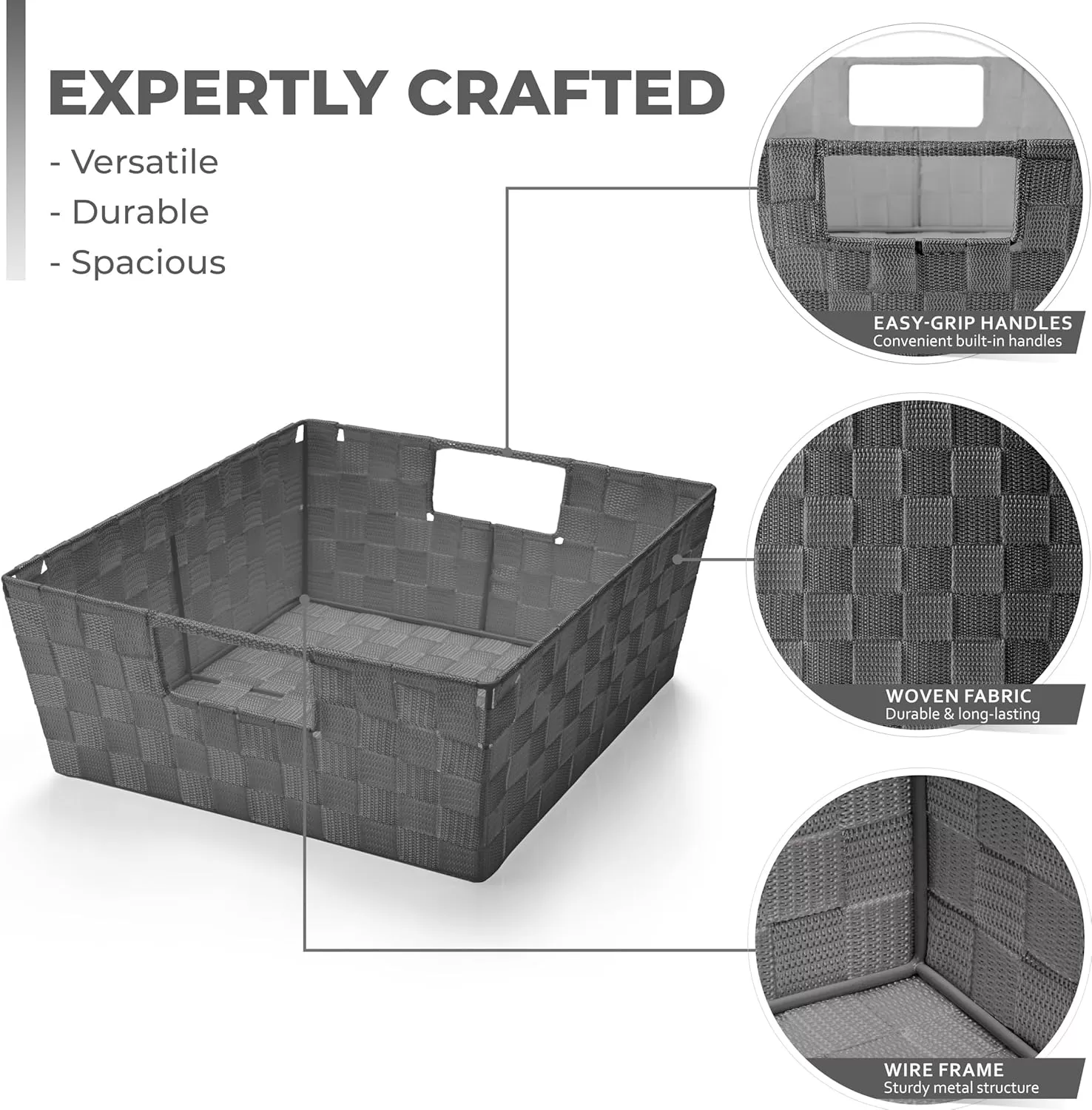 Space-Saving and Stylish The slim and compact design of the medium and small baskets fits effortlessly in drawers, while the large sizes are perfect for shelves, closets, or countertops, maximizing storage and organization