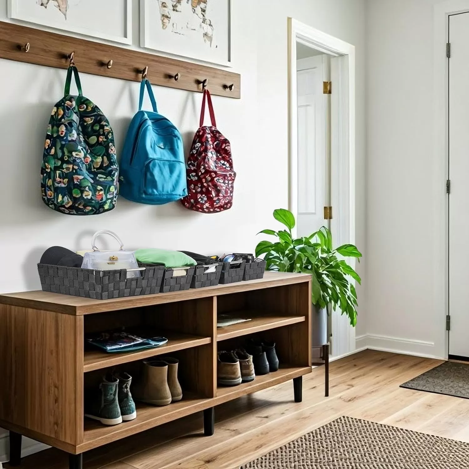Beautiful and Functional Home Décor These woven baskets not only help keep your home tidy but also enhance your space with their modern black mesh design, blending seamlessly into any décor style