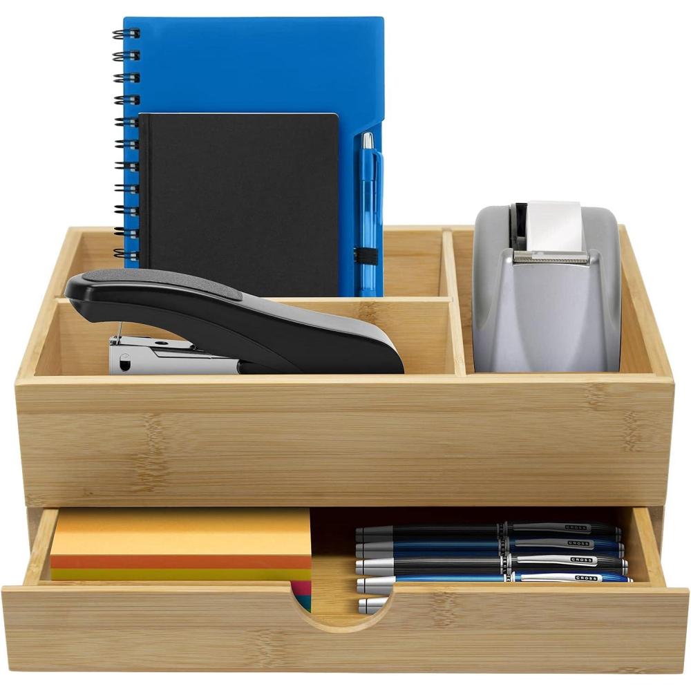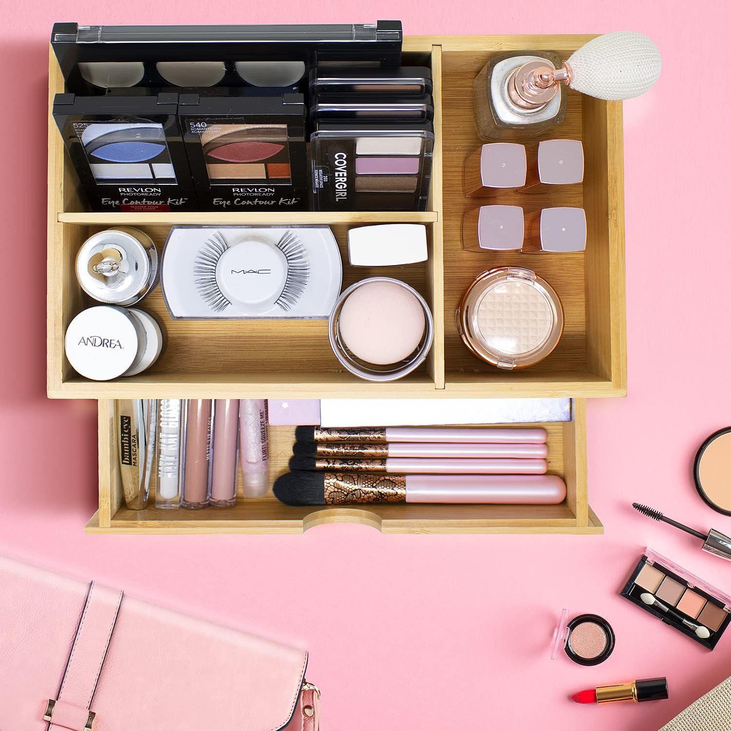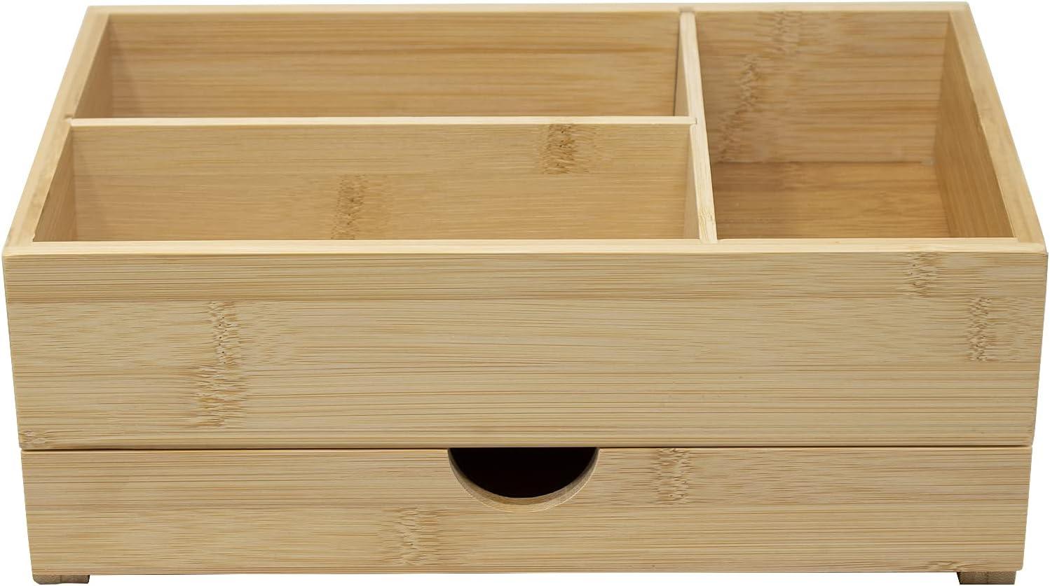 BAMBOO ORGANIZER — Neatly stores makeup, toiletries, supplies, and more with divided compartments and drawer — Ideal for storage and display on any countertop
