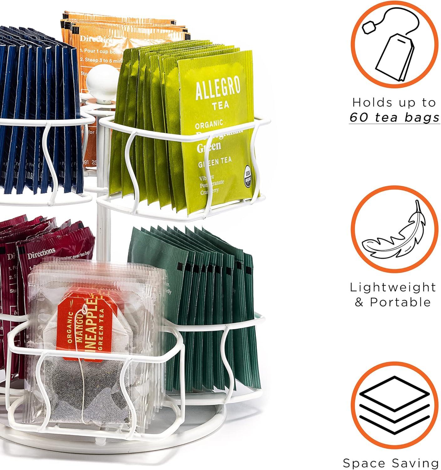 Tea Bag Carousel — The Sorbus Tea Bag Carousel can hold up to 60 of your favorite tea bags — Organizer revolves 360 degrees to display the different types of tea you have in stock