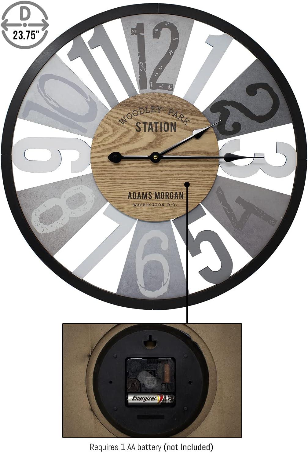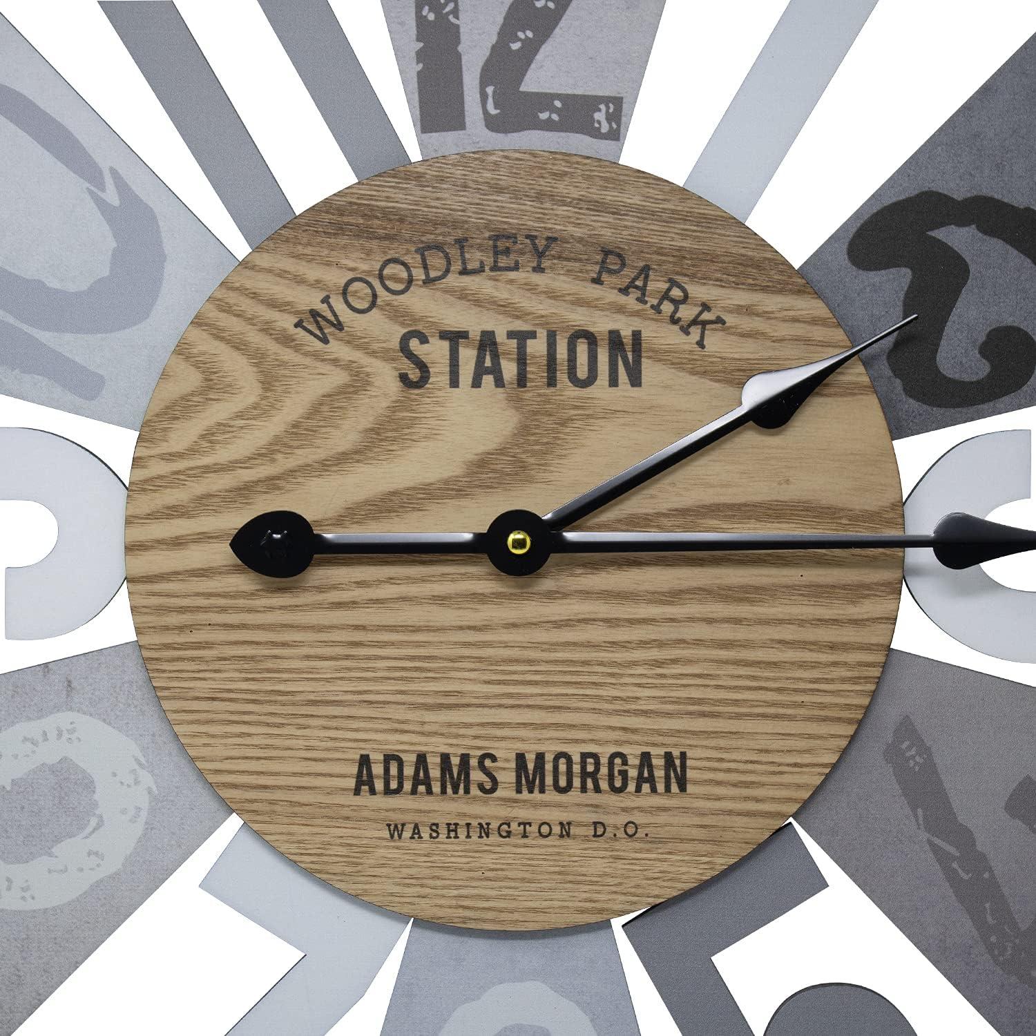 Design Specifications: Features wording “Woodley Park Station, Adams Morgan Washington DC” on clock face – Large Arabic Numerals – Spade style clock hands – Made of MDF wood and metal – Analog time display – Quartz movement – Battery operated – Requires 1 AA battery (NOT Included) – Indoor Use Only – Wipe clean with dry cloth — Measures approximately 23.75” D