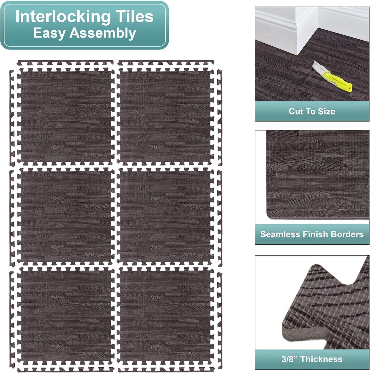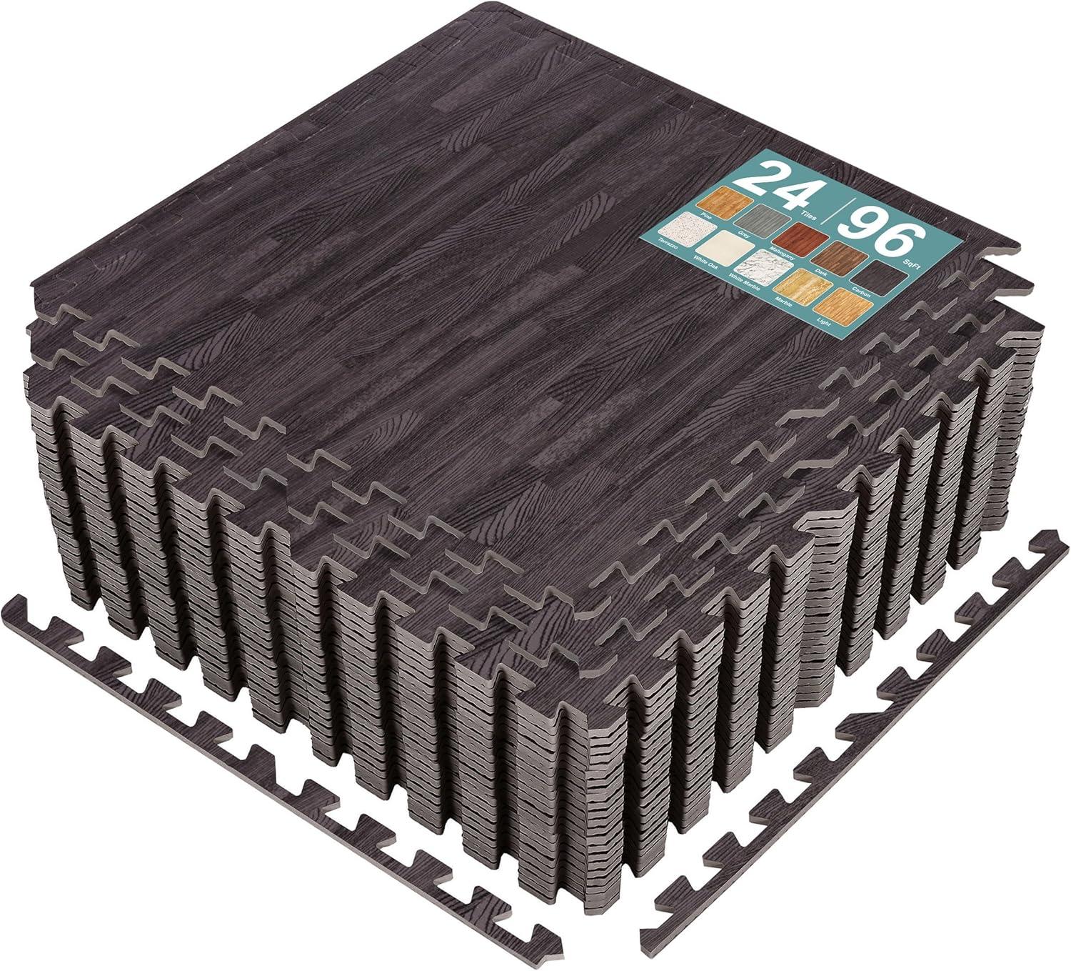 Sorbus Wood Grain Floor Tiles Foam Mat EVA Interlocking Mats Tile 3/8-Inch Thick Flooring Wood Puzzle Exercise Mats w/Borders – Home Playroom Basement, Apartment, Trade Show, Baby, Dance(Carbon)