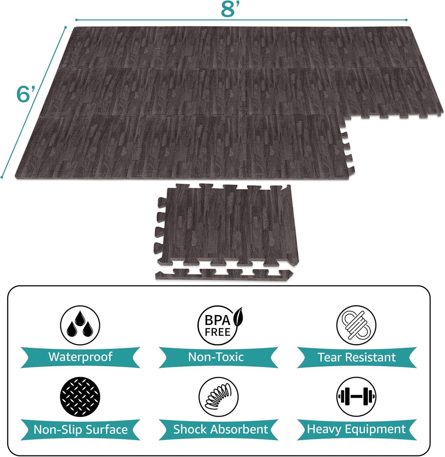 For Home & Business: Fits any room décor that complement a mats wood or foam tiles wood style pattern — Ideal foam tiles for floor and multi-purpose floor mat for living room, basement, playroom, infant crawling area, interlocking exercise floor mats, yoga/meditation room, dorm, laundry room, beneath camping tents and sleeping bags — Makes a great anti fatigue mat for trade shows, conventions, office environment, gym, health care facility, daycare, classroom, and more