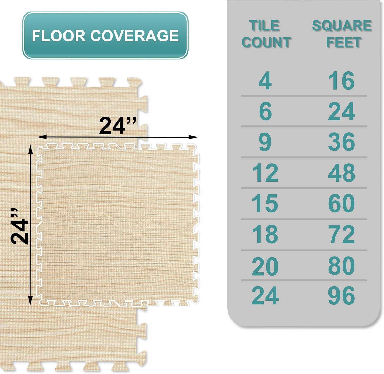For Home & Business: Fits any room décor that complement a mats wood or foam tiles wood style pattern — Ideal foam tiles for floor and multi-purpose floor mat for living room, basement, playroom, infant crawling area, interlocking exercise floor mats, yoga/meditation room, dorm, laundry room, beneath camping tents and sleeping bags — Makes a great anti fatigue mat for trade shows, conventions, office environment, gym, health care facility, daycare, classroom, and more