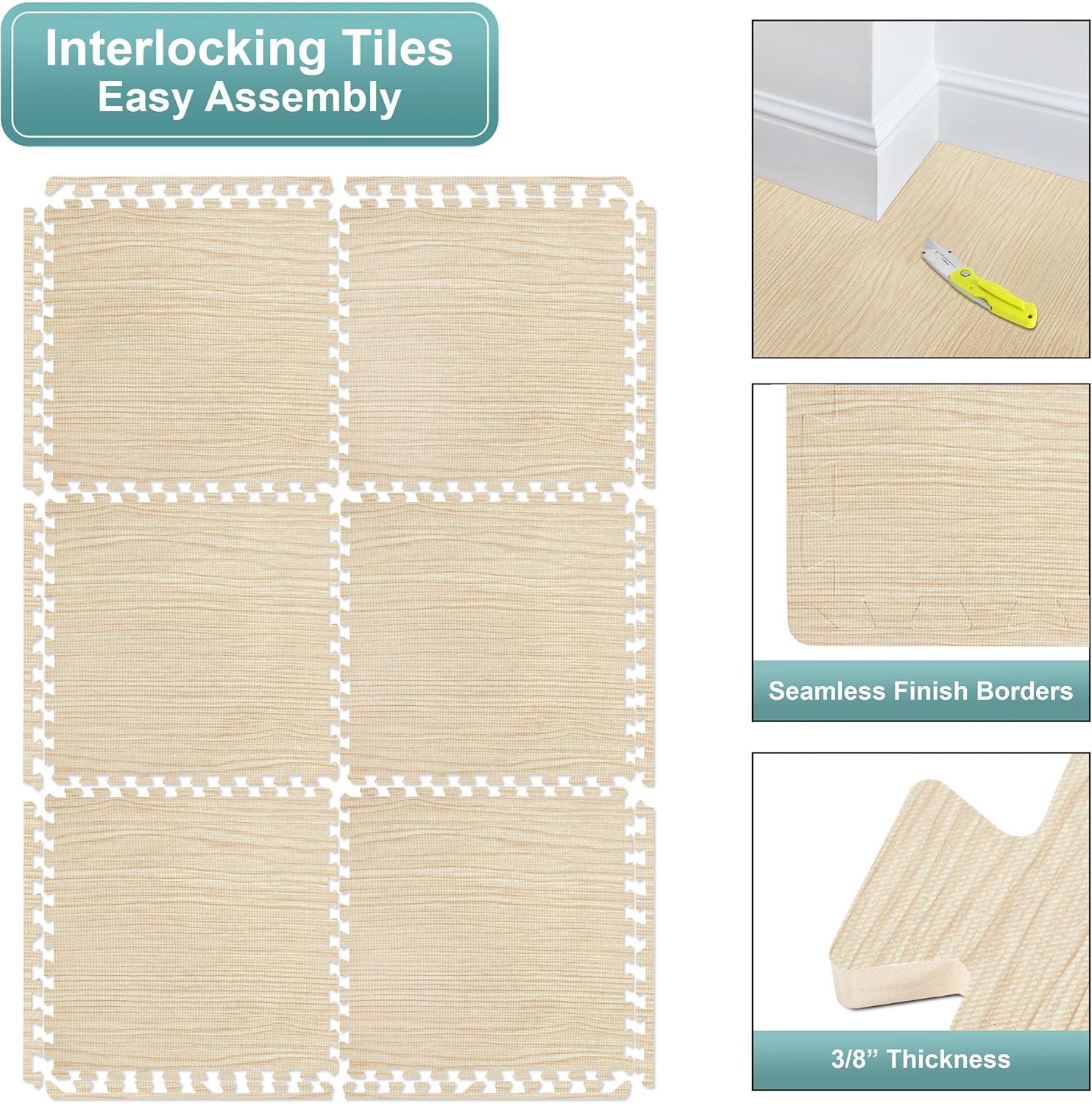Get more for your money with our exclusive bundle deals on Sorbus Wood Grain Floor Tiles Foam Mat EVA Interlocking Mats Tile 3/8-Inch Thick Flooring Wood Puzzle Exercise Mats w/Borders – Home Playroom Basement, Apartment, Trade Show, Baby, Dance(Light Pine) and accessories.