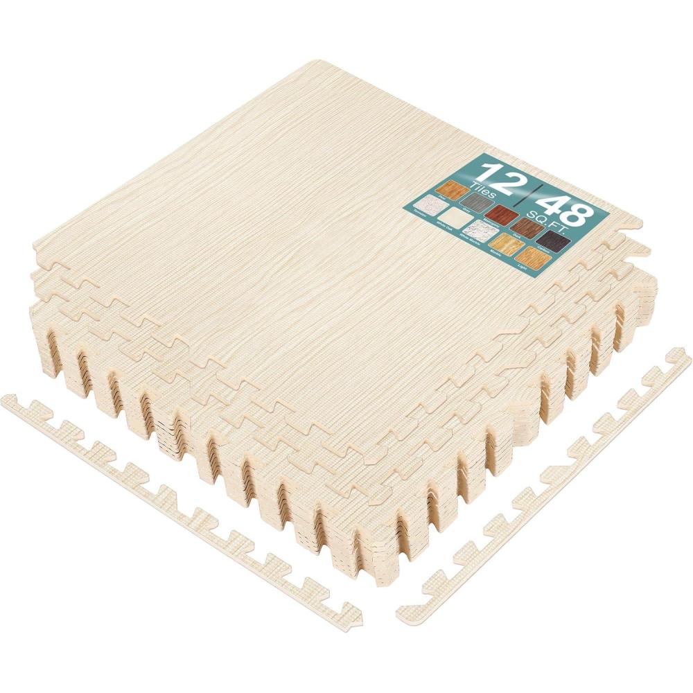 Wood Grain Floor Mat (12 Tiles, 48 Sq Ft, Light Pine): Provides comfort and cushion to hard floor surfaces with classic faux wood finish — Includes 12 floor mat wood grain tiles to enhance the comfort and appearance of your space