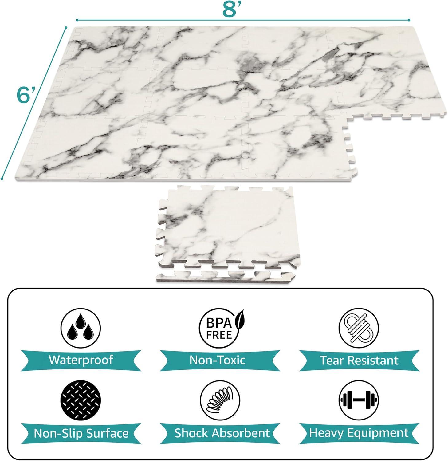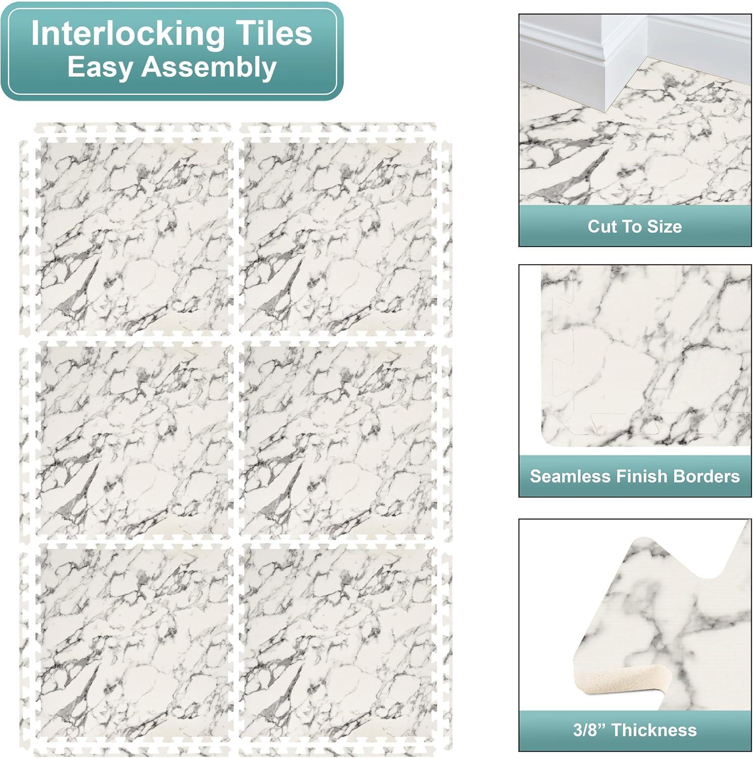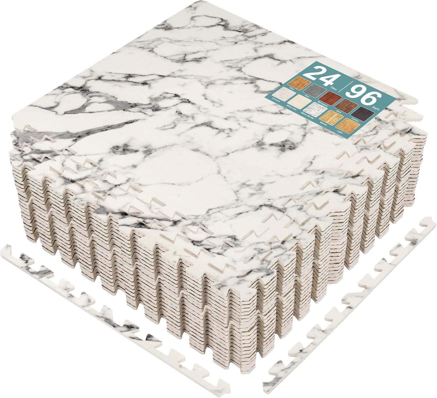 Sorbus Wood Grain Floor Tiles Foam Mat EVA Interlocking Mats Tile 3/8-Inch Thick Flooring Wood Puzzle Exercise Mats w/Borders – Home Playroom Basement, Apartment, Trade Show, Baby, Dance(White Marble)