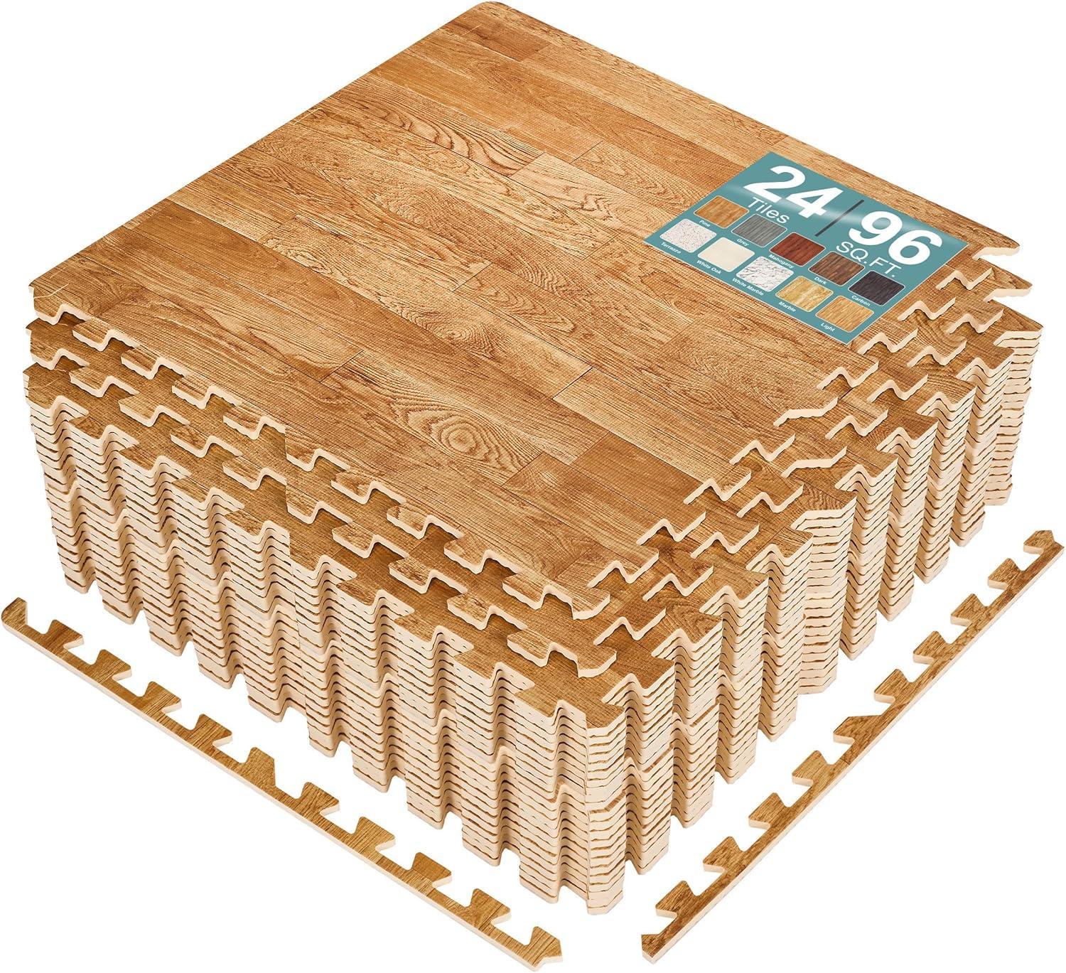 Sorbus Wood Grain Floor Tiles Foam Mat EVA Interlocking Mats Tile 3/8-Inch Thick Flooring Wood Puzzle Exercise Mats w/Borders – Home Playroom Basement, Apartment, Trade Show, Baby, Dance(Wood Grain – Pine)