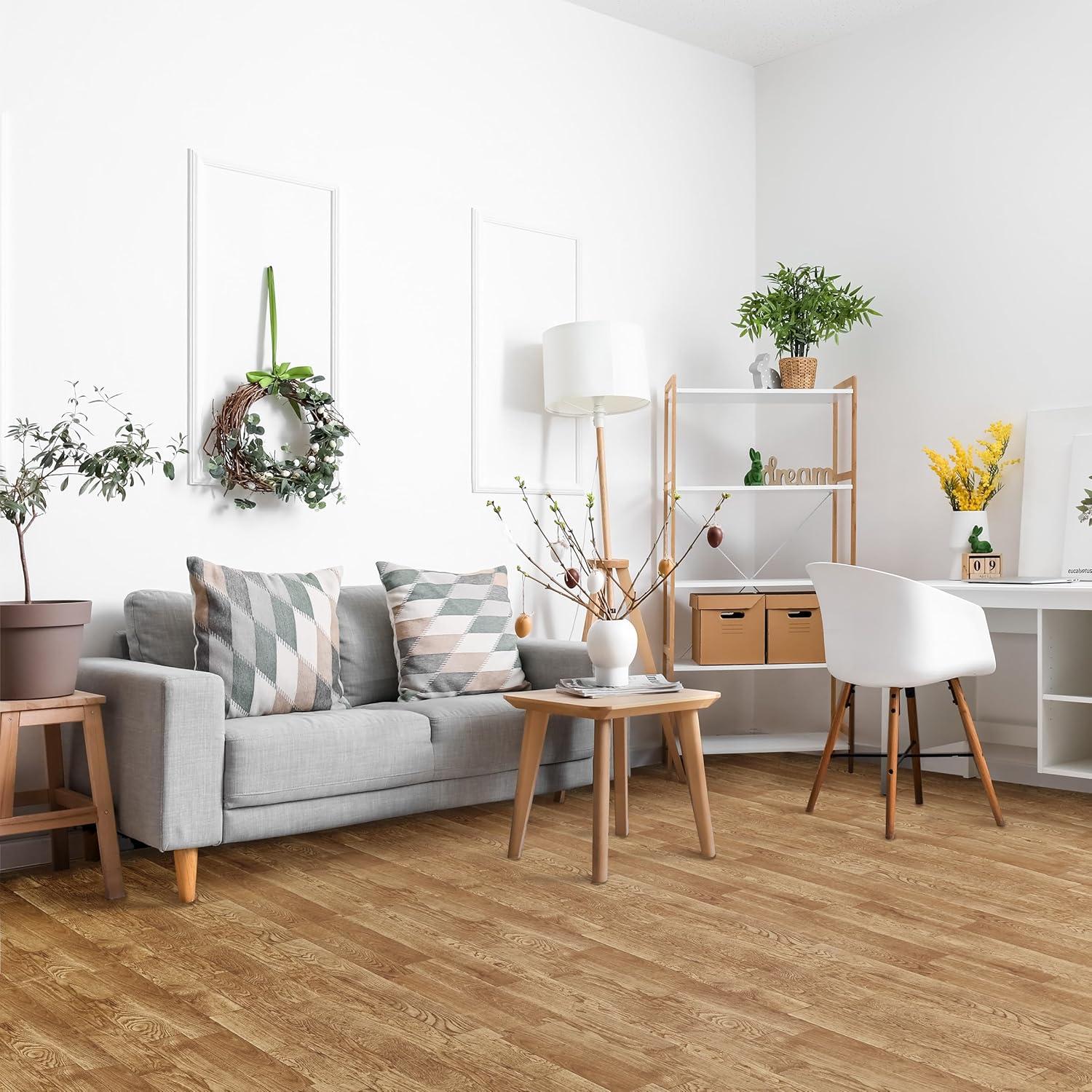 Easy to Install: Easy do-it-yourself installation, no adhesive needed — Interlocking flooring mats wood tiles set up in just minutes — Printed Film material is OPP 100% Plastic, Mat is 100%PE — Lightweight and portable — Durable enough to withstand common foot traffic — Waterproof and non-absorbent — Easy to clean — Each tile measures approximately 24″L x 24″W (Entire Unit Covers 48 Sq ft)