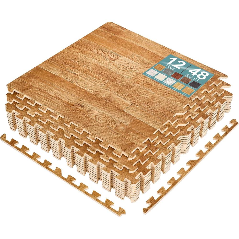 Wood Grain Floor Mat (12 Tiles, 48 Sq Ft, Light Pine): Provides comfort and cushion to hard floor surfaces with classic faux wood finish — Includes 12 floor mat wood grain tiles to enhance the comfort and appearance of your space